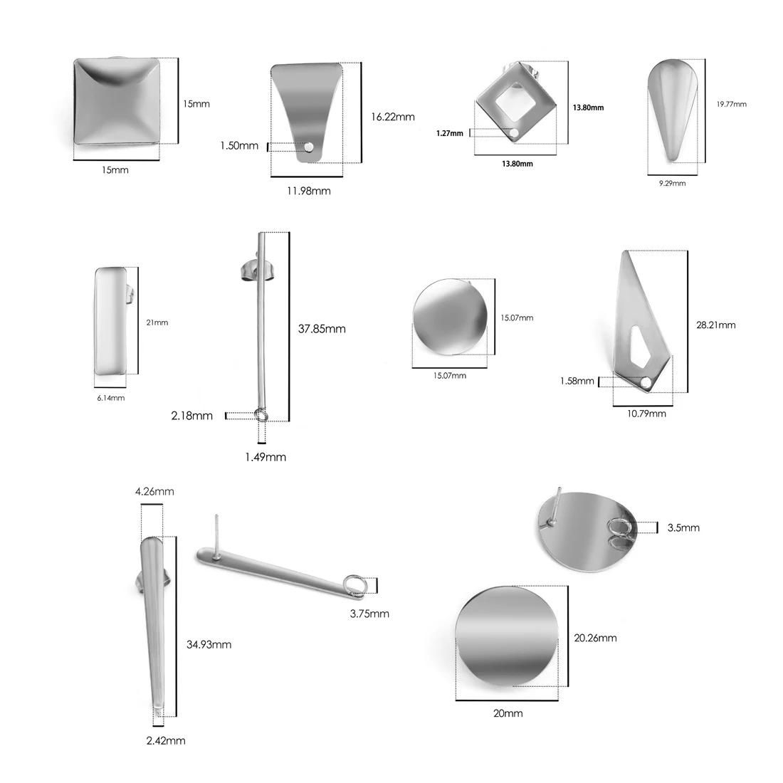Застежки-гвоздики для сережек, из нержавеющей стали, 10 шт.лот