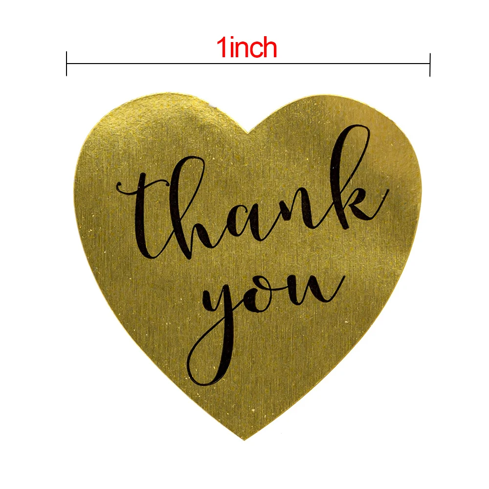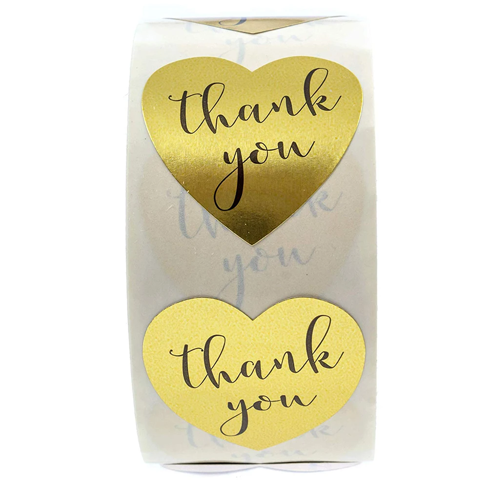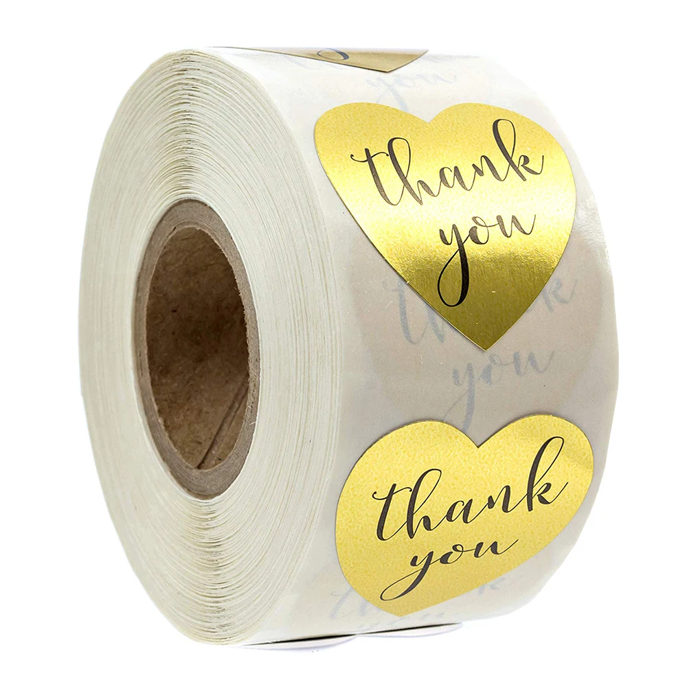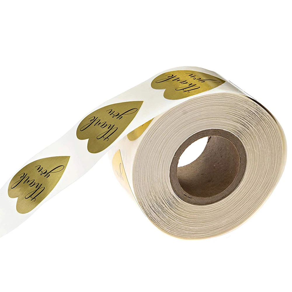 500 шт.рулон, 1 дюйм, Золотая фольга в форме сердца спасибо, наклейка s этикетки для печати, наклейка для скрапбукинга, для подарочной коробки, стикер для канцелярских товаров наклейки