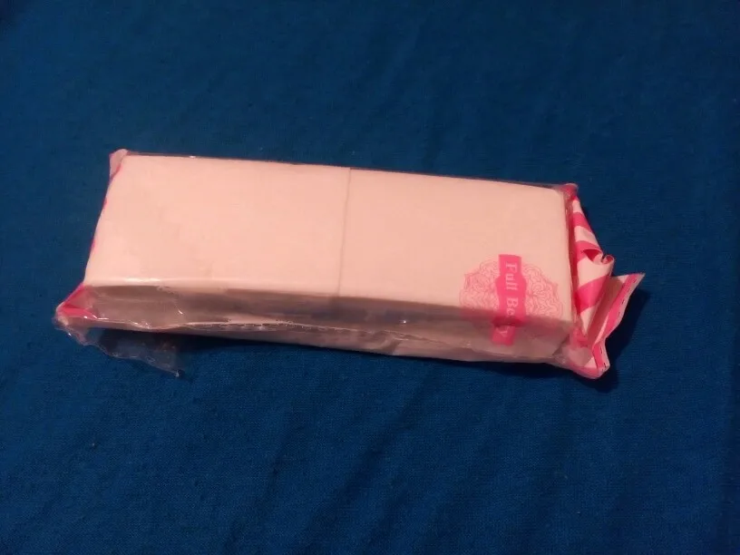 В Хбр за месяц, отслеживалось, т.к много заказала. Салфетки очень хорошие, твердые, будто накрахмаленные, плотные и без ворса. Для сравнения слева салфетка с этого магазина, справа - с другого. На фото несильно видно, но справа тоньше и есть мелкая бахромка по контуру. Странно, что на упаковке написано 400шт, а внутри 204, я зануда, я посчитала! В каждой кучке по 10шт и 4шт на брак видимо.
