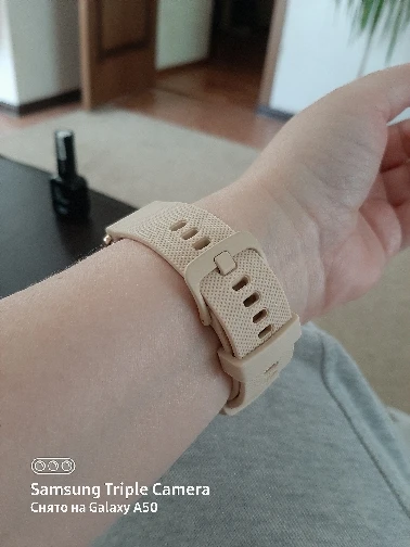 Браслет выглядит очень высокого качества! Силикон очень мягкий и удобный, и бежевый цвет, который я заказал, идеально сочетается с бежевым циферблатом Seiko SNK803. Очень нравится, как пряжка бежевого цвета, а не металла и, надеюсь, не ржавеет! Я заплатил за более быструю доставку
