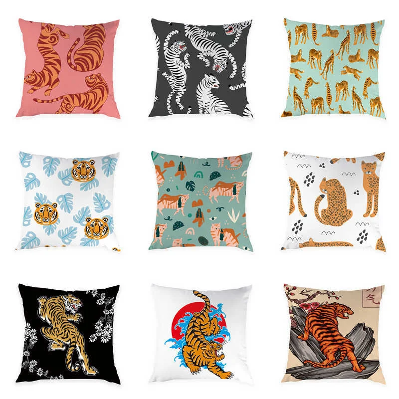 Мультяшный чехол для подушки с тигром, декоративные подушки для дома, чехол s, восхитительные животные, диванные подушки на кровать, наволочки из полиэстера, наволочки kissen