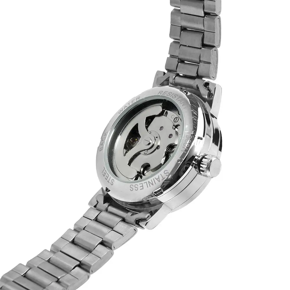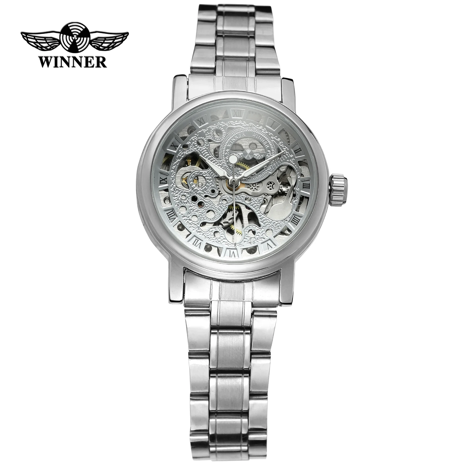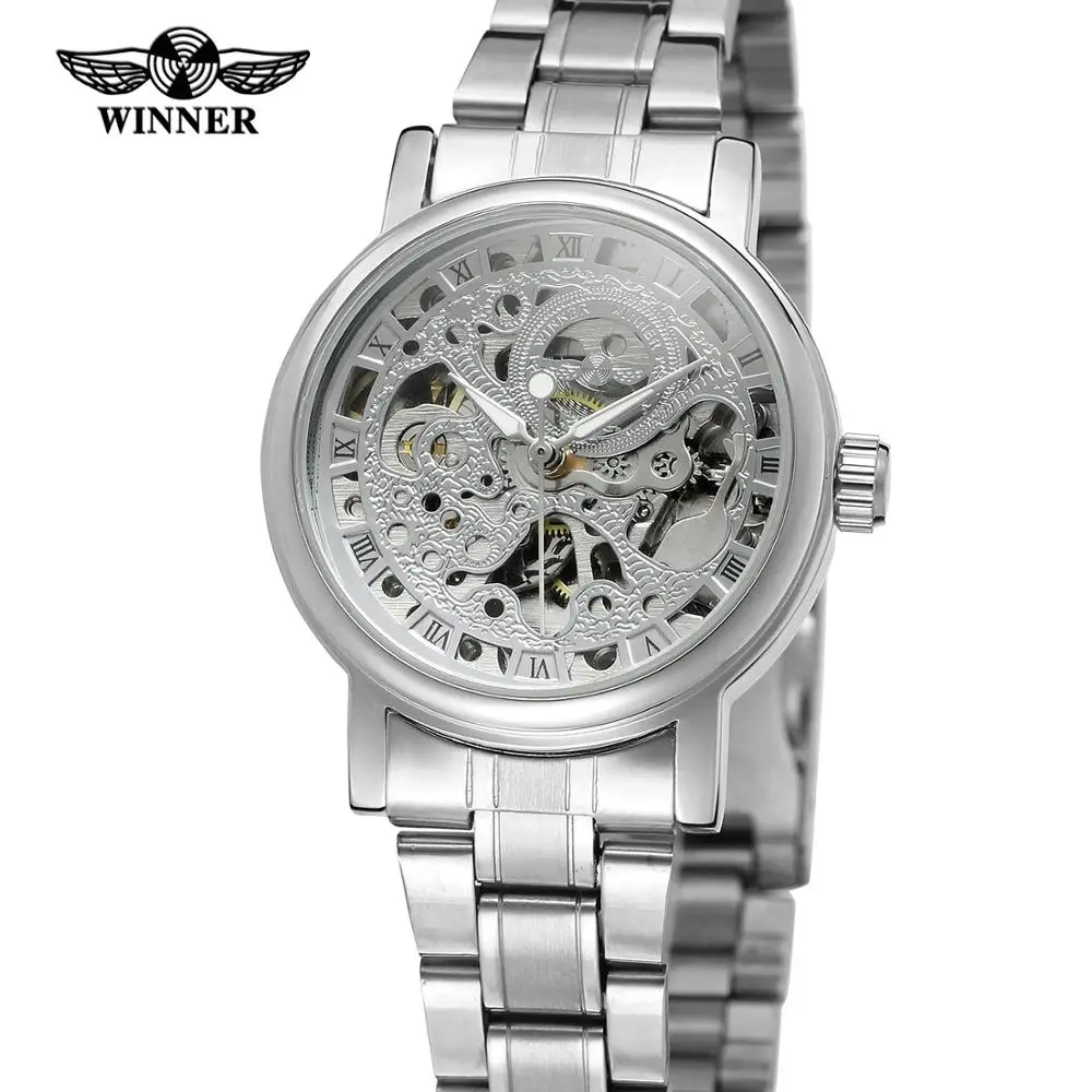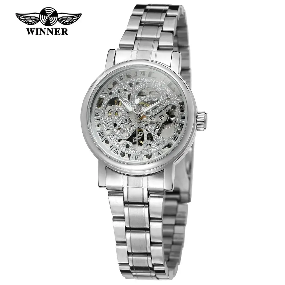 Часы наручные WINNER мужскиеженские механические, модные автоматические с серебристым циферблатом и браслетом из нержавеющей стали