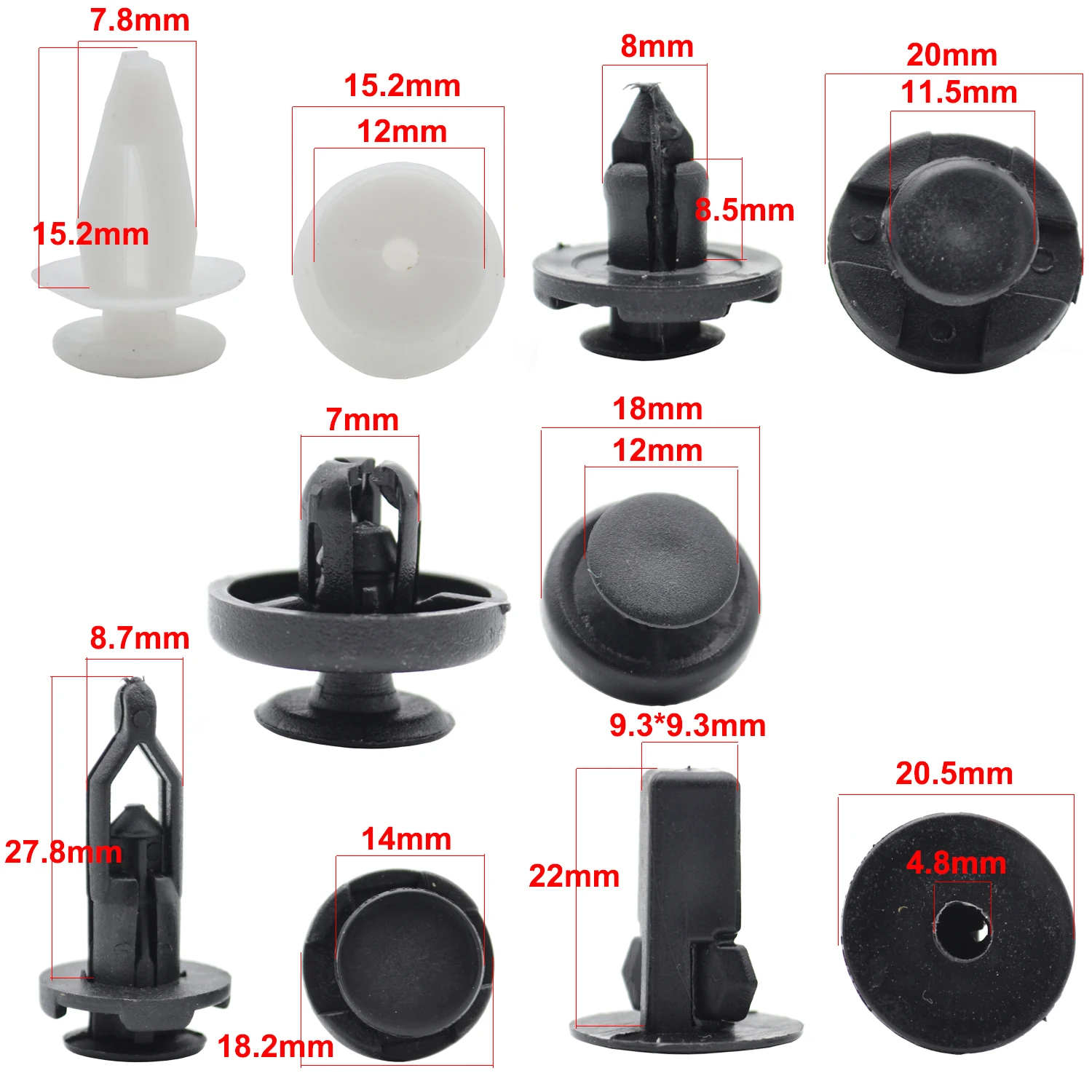 Особенности:Эти заклепки сделаны из пластикового материала, подходит для использования в автомобиле.Автомобиль хороший аксессуар, обычно используется для установки боковых юбок, бамперов и другой отделки.Их можно использовать на автобусах, поездах, самолетах, грузовиках, автомобилях.Пуш-ап, изготовлены из пластикового материала.