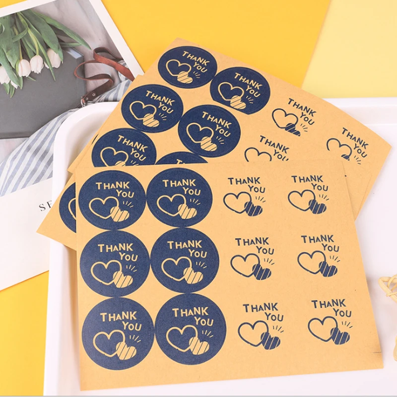 100 шт.лот милые круглые спасибо с сердцем Стикеры из крафтовой бумаги печать ручной работы стикеры DIY бумажные этикетки Детские Канцелярские принадлежности стикеры s
