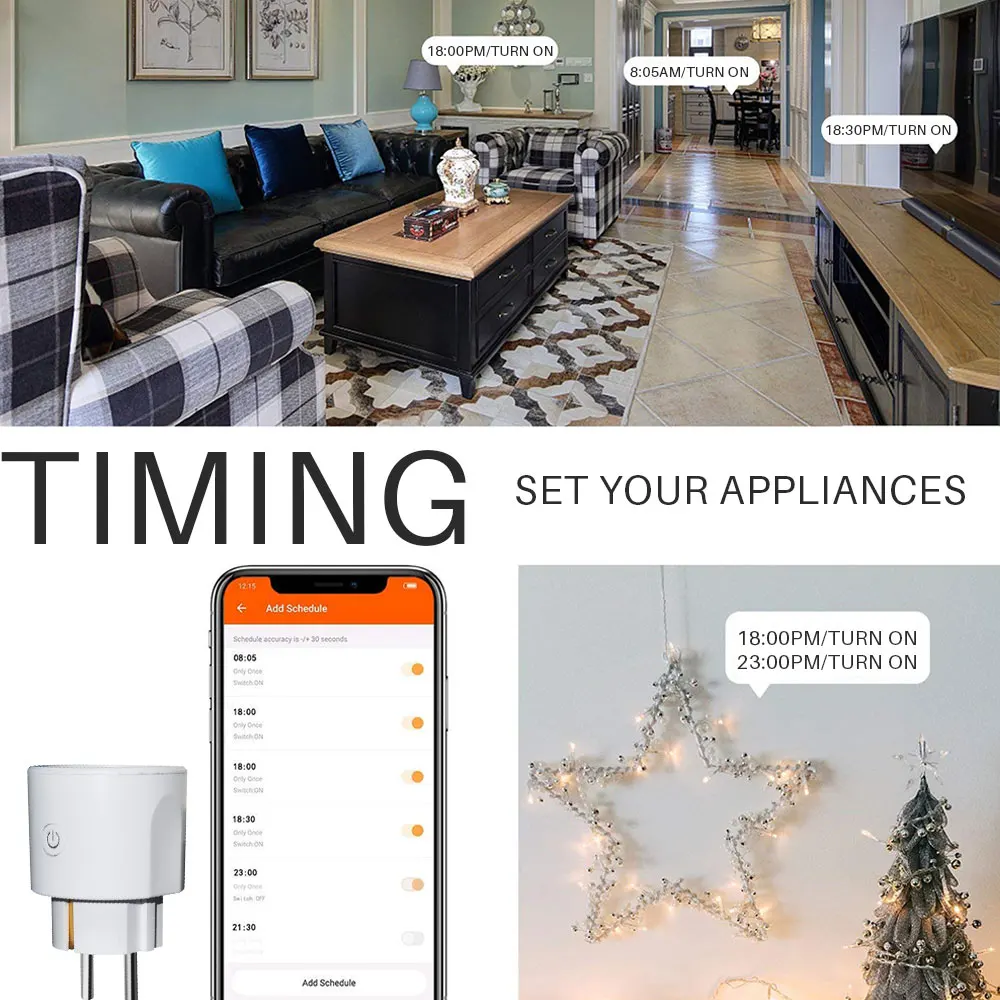 Умная розетка Wi-Fi 16 А, дистанционное управление через приложение для синхронизации через iOS, Android, работает с Alexa, Google Assistant, голосовое управление