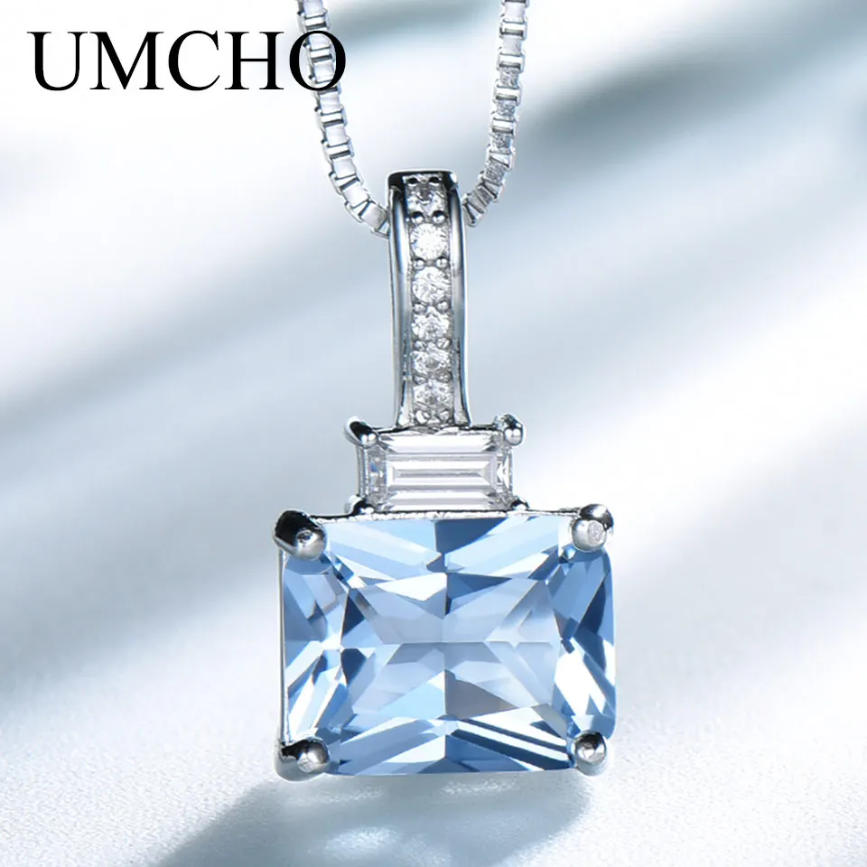 UMCHO прямоугольное Nano небесно-голубое топаз ожерелье подлинное серебро 925 пробы Подвески Ожерелья для женщин драгоценный камень ювелирные изделия
