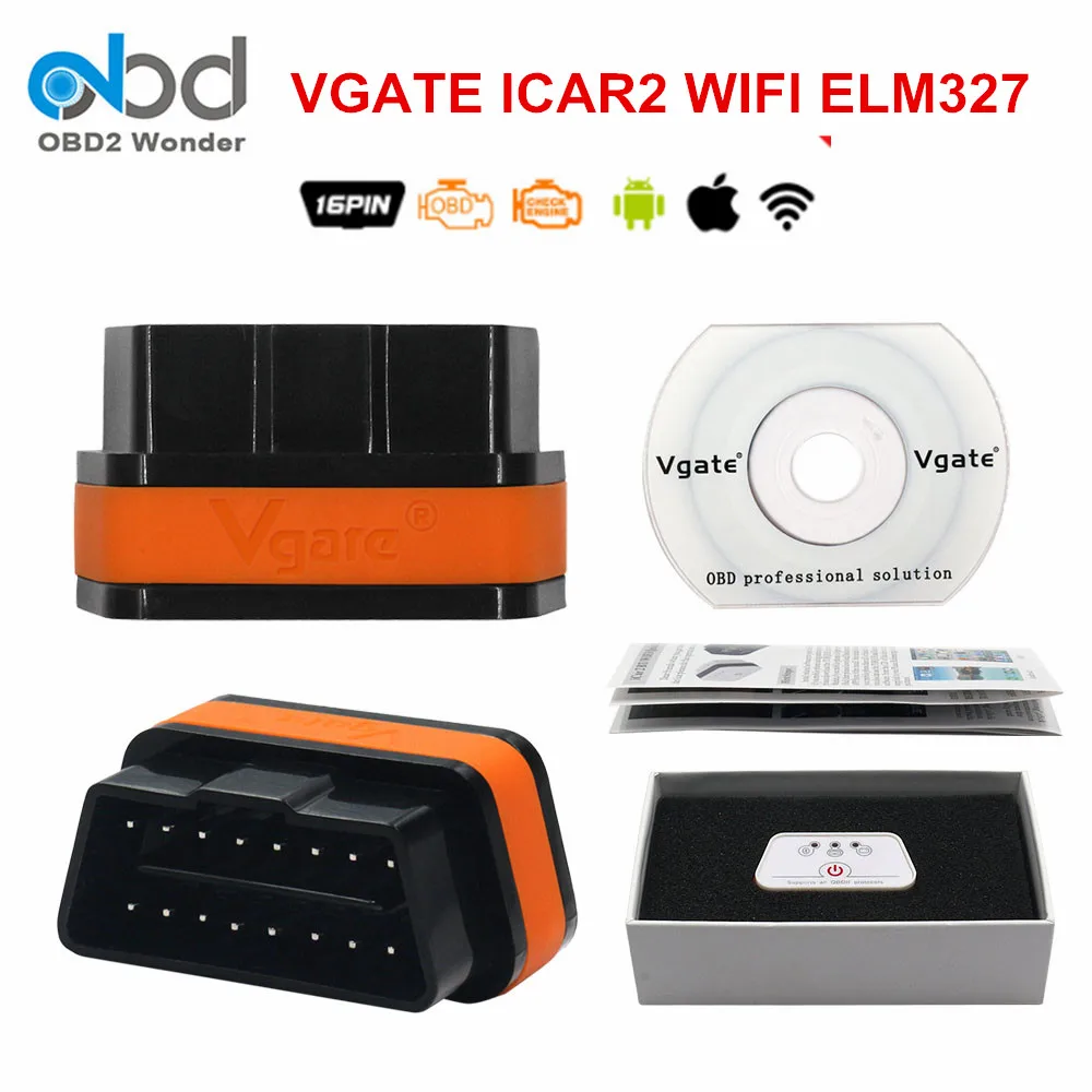 Недавно Vgate Icar2 Wi-fi ELM 327 IOS Android ПК OBD II диагностический сканер Икар 2 Wi-fi OBD2 адаптер для все протоколы бортовой диагностики версии II автомобили