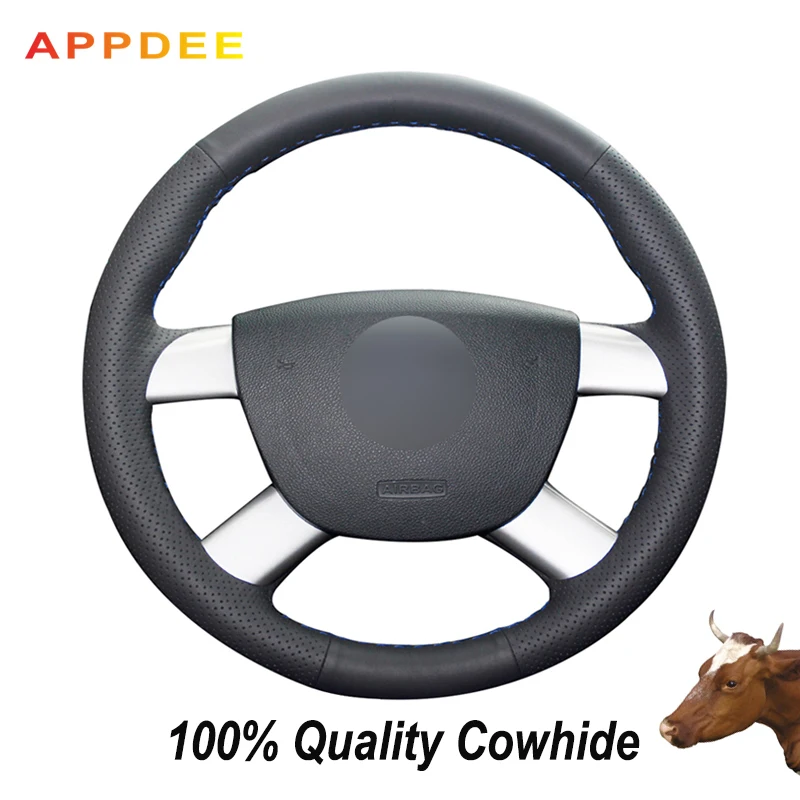 Чехол Appdee из натуральной кожи черного цвета, прошитый вручную чехол рулевого колеса автомобиля для Ford Kuga 2008, 2009, 2010, 2011, Focus 2