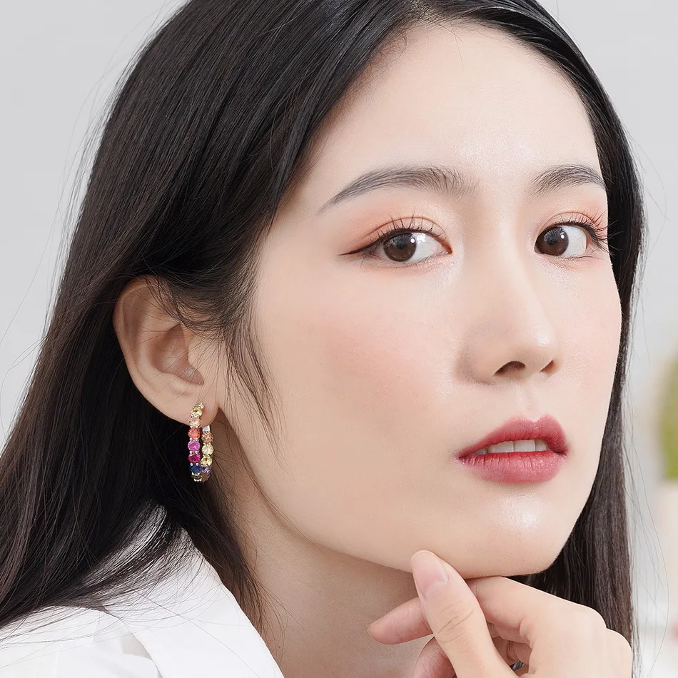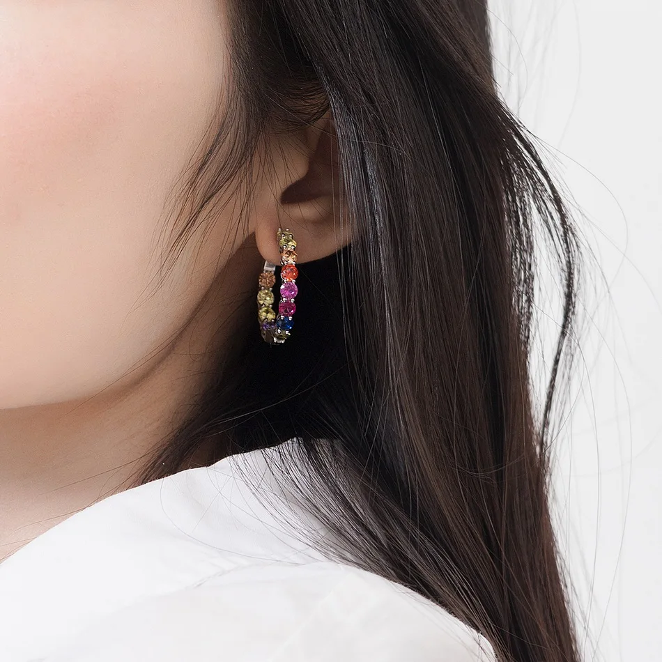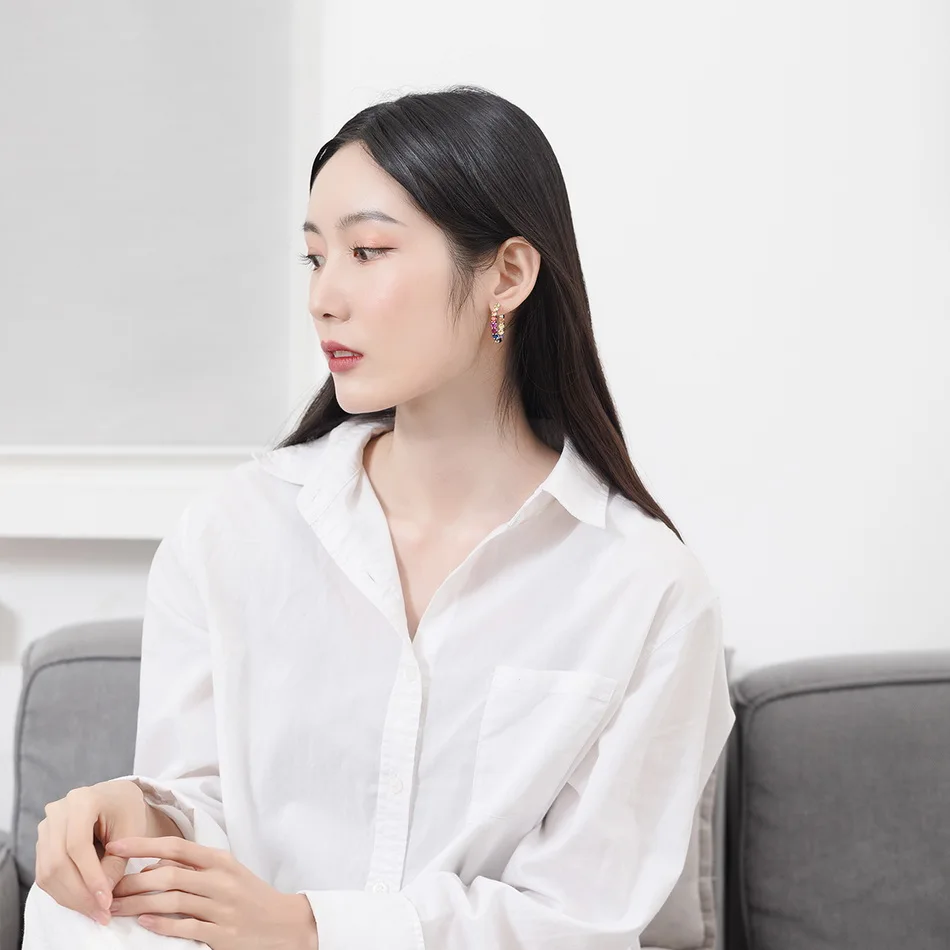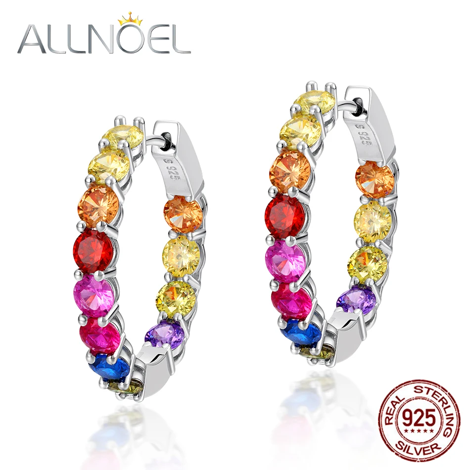 Женские серьги-кольца ALLNOEL, серьги из стерлингового серебра 925 пробы с разноцветными радужными подвесками, вечерние серьги высокого качества из настоящего золота