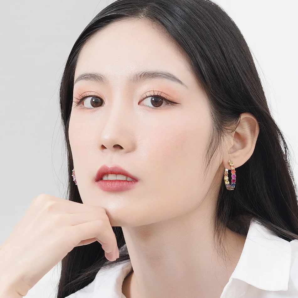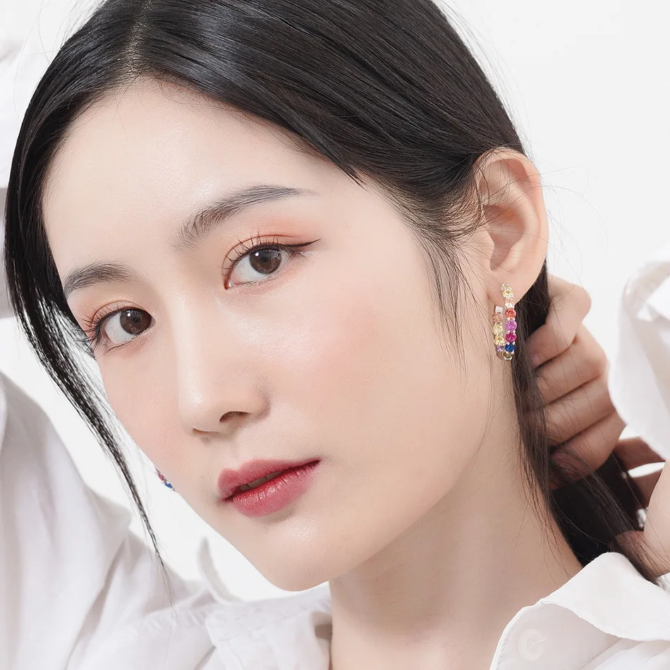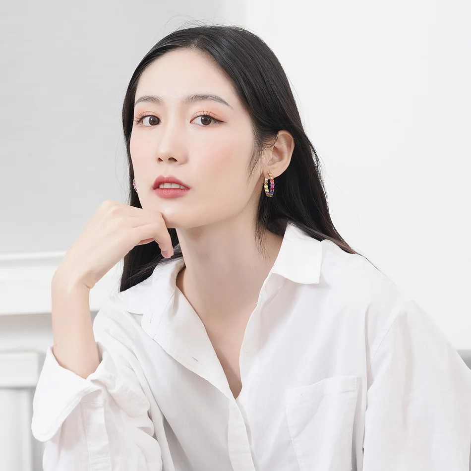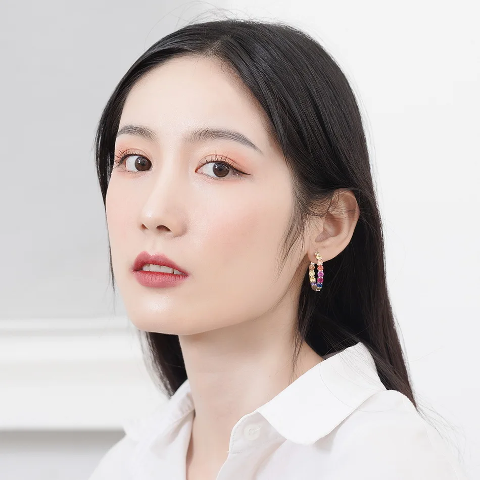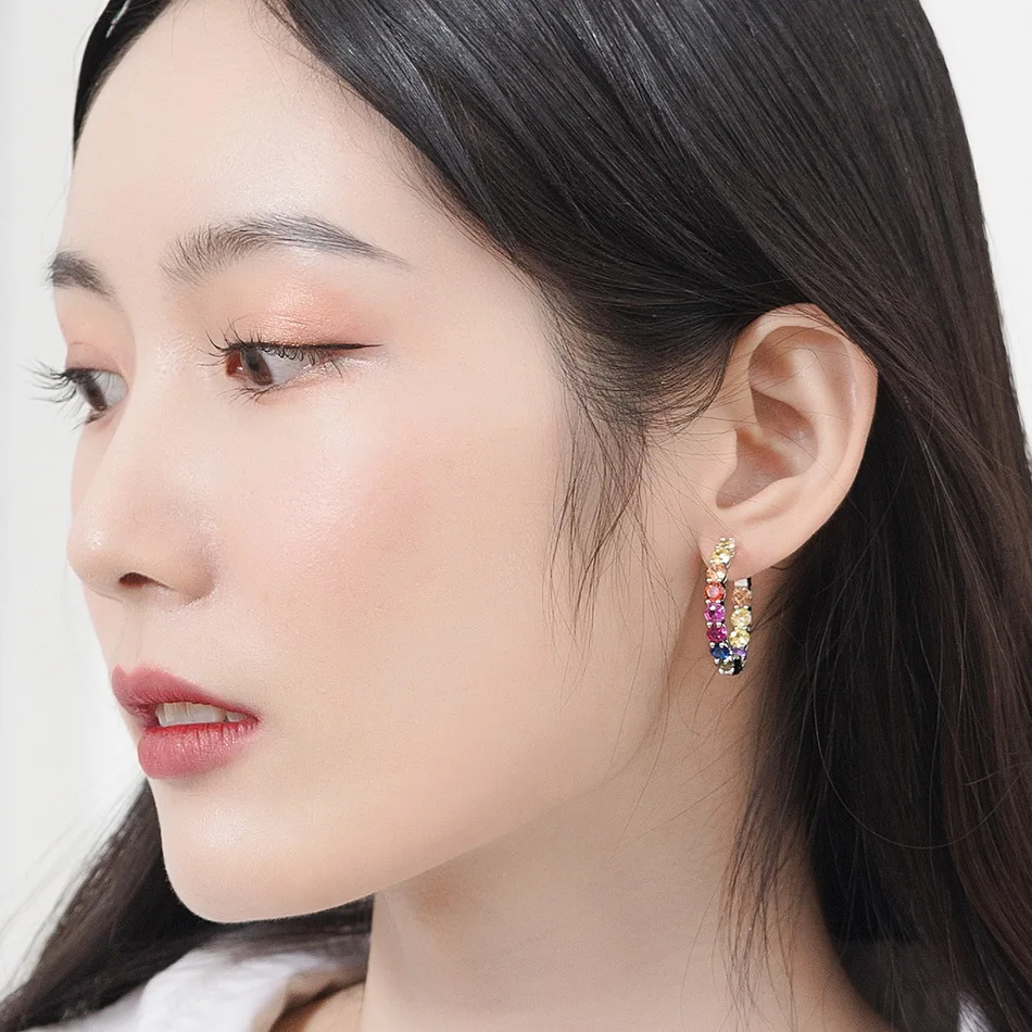 Женские серьги-кольца ALLNOEL, серьги из стерлингового серебра 925 пробы с разноцветными радужными подвесками, вечерние серьги высокого качества из настоящего золота