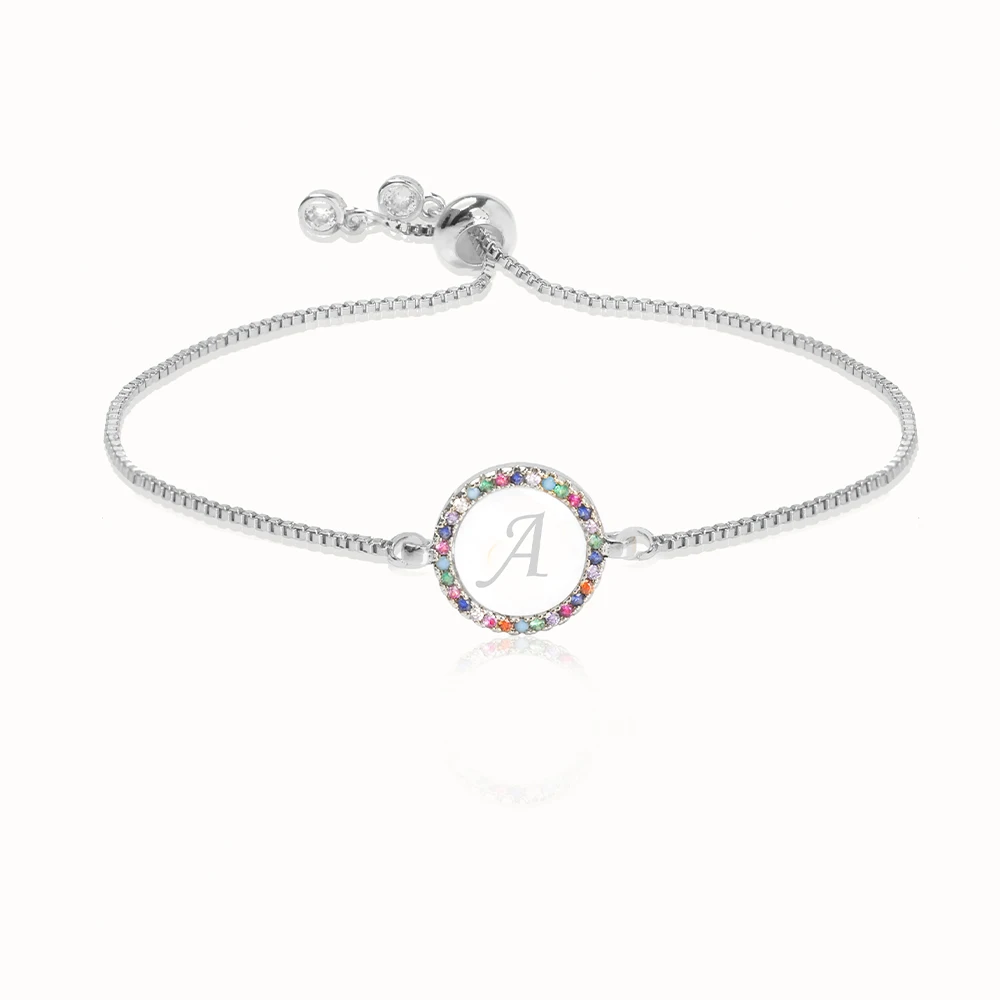 Женский Регулируемый браслет с буквами и разноцветным радужным цирконием, 26 ювелирное изделие, цепь в виде змеи, подарки на Рождество