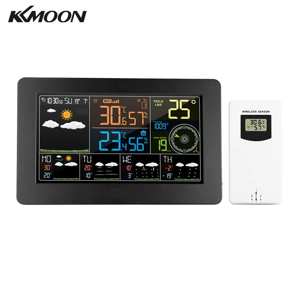 Метеостанция KKMOON, Многофункциональный цветной монитор с Wi-Fi, управление через приложение, умный цифровой Внутренний и наружный термометр, гигрометр