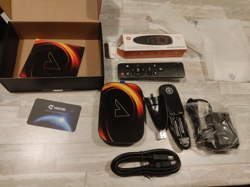 Выбрал базовую комплектацию с экспресс доставкой. Доставка вышла в 7 дней, в Пятёрочку. Буквально через минут пять уже смотрел телевизор. В комплекте приставка, пульт, кабель и блок питания. Кабель использую от Vention. Пульт работает переходами с выделением и как мышка тоже, но это будет медленно. Подключил беспроводную мышь стало веселее. Установил из Google Play пару любимых плееров. Запустил aida64, всё соответствует заявленным характеристикам. Скорость WiFi 5ггц вполне приличная, погорячился с покупкой rj45 кабеля. Тут пишут про перегрев и про медленное срабатывание команд, не знаю, не заметил.