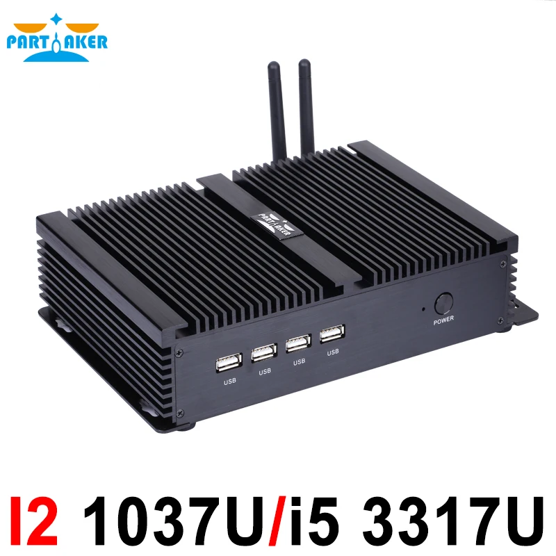 Безвентиляторный мини-ПК Windows XP7810 Intel Core i5 3317U 1007U 2 * Lans 4 * RS232 COM промышленный ПК прочный компьютер 300M WiFi HDMI + VGA