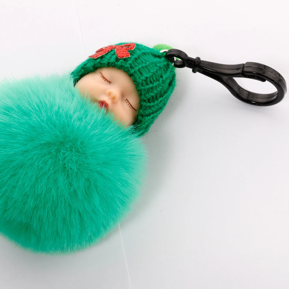 Милый брелок для ключей со спящим ребенком, брелок с помпоном из искусственного меха, женский брелок, брелок для автомобиля, брелок, ювелирное изделие, подарок для новорожденного ребенка