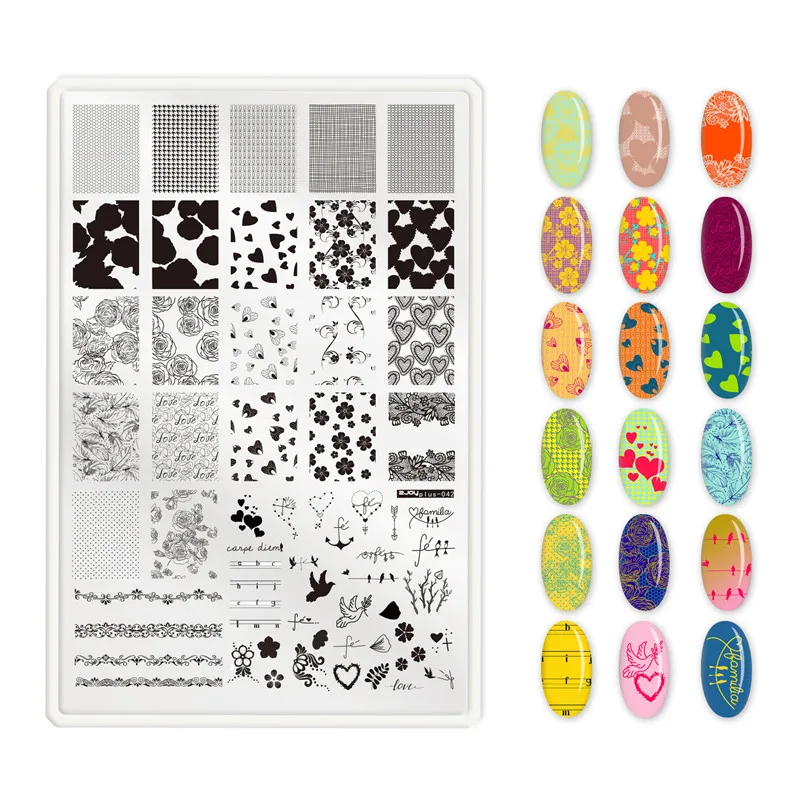Трафарет прямоугольный 9, 5 х14, 5 см, трафарет с огненным пламенем, 51 стиль, сердце, любовь, кружевная тарелка, Бабочка, шаблон для стемпинга для нейл-арта PLUS SE457e