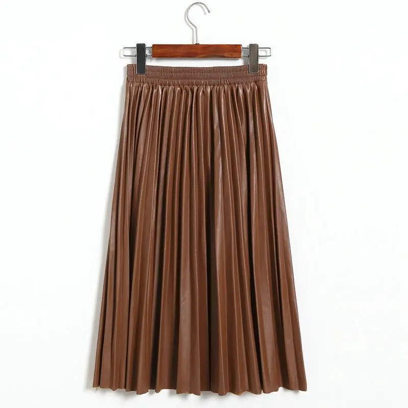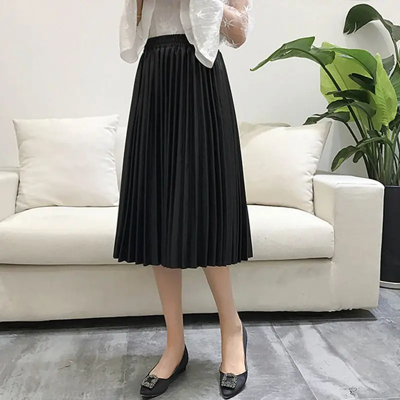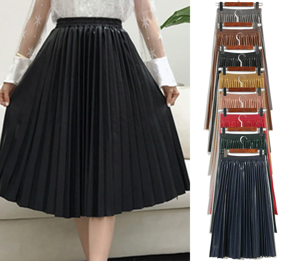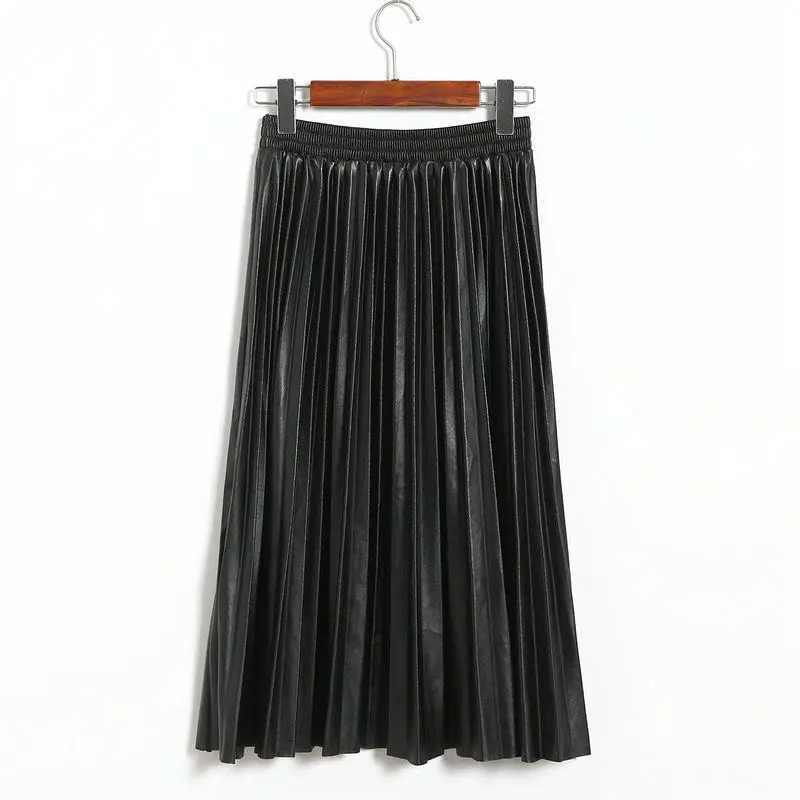 Женская плиссированная юбка из искусственной кожи с высокой талией, Повседневная Длинная юбка-Макси