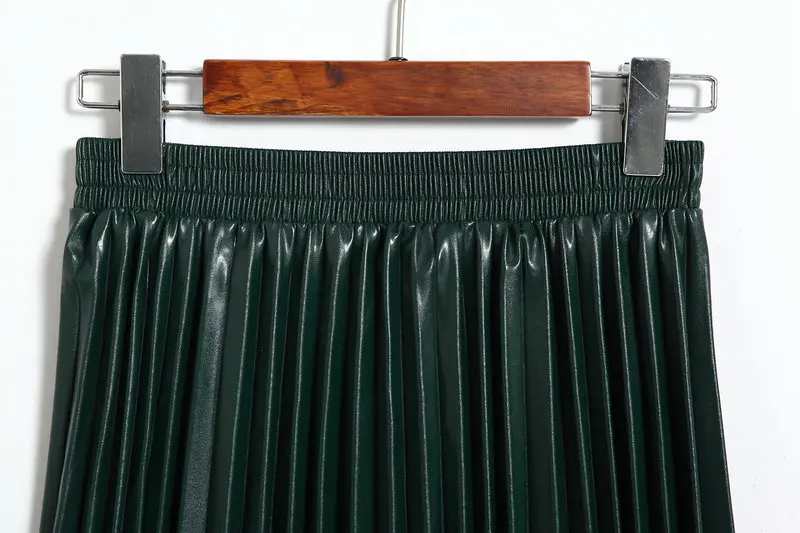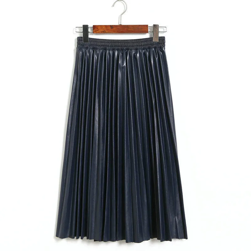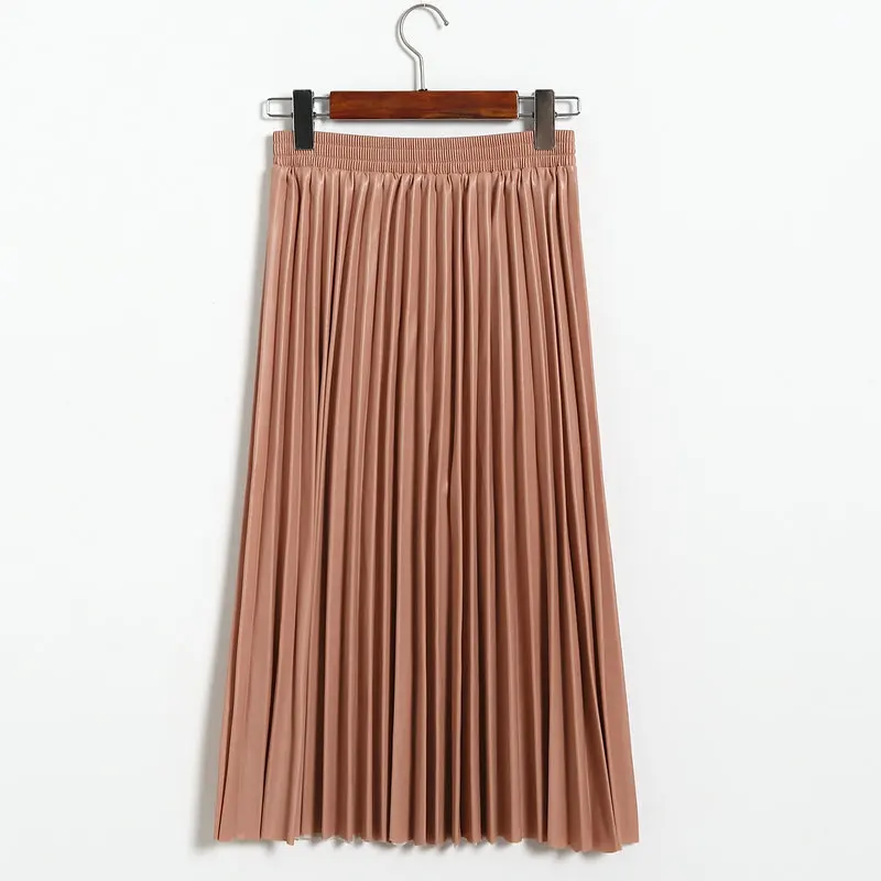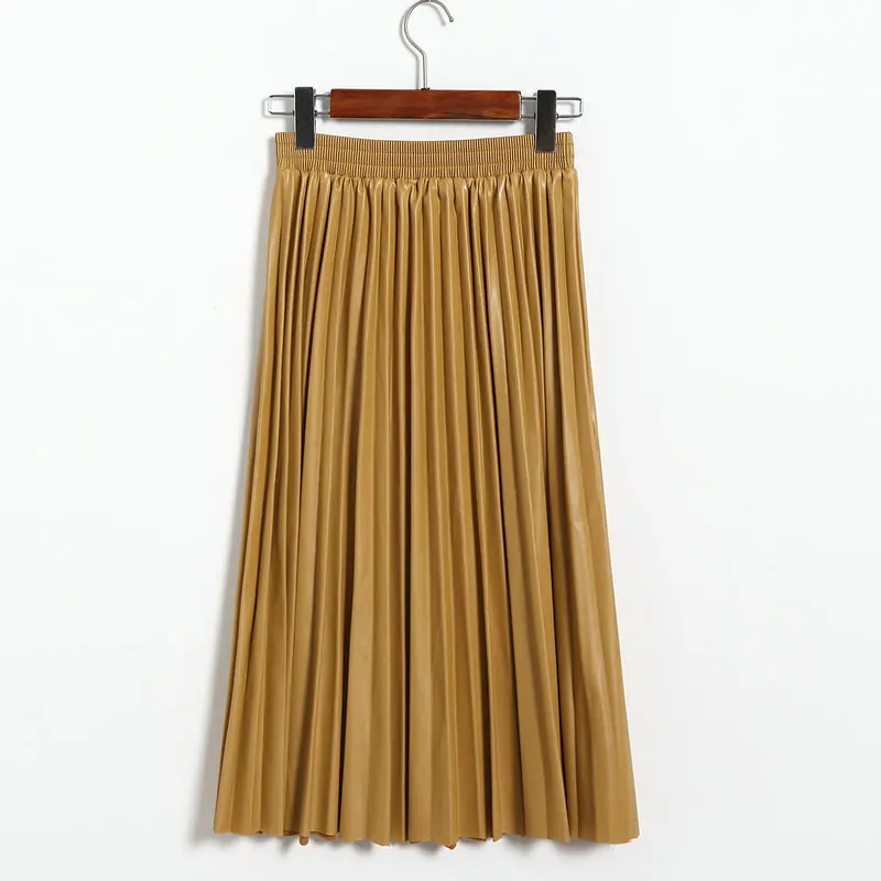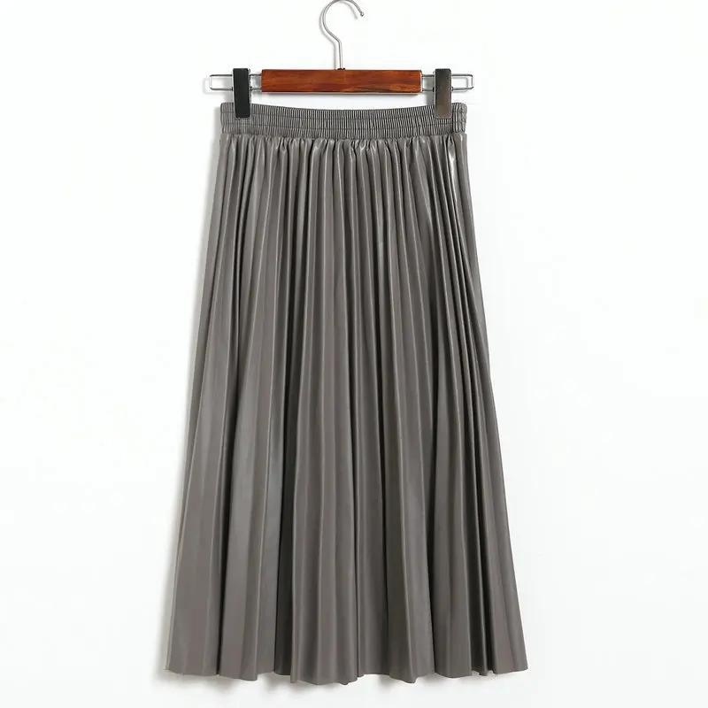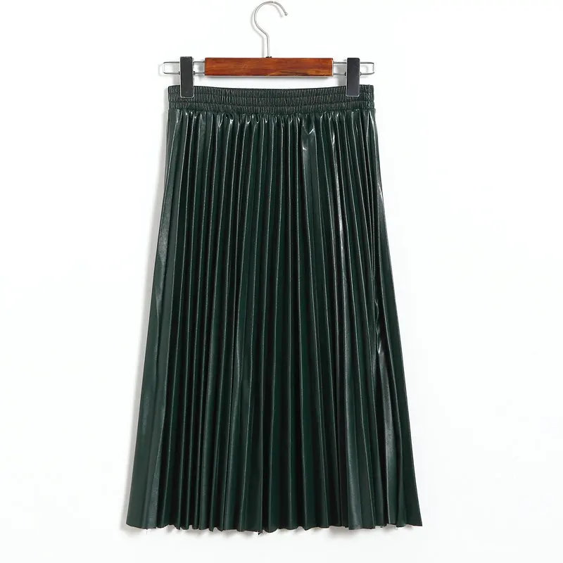 Женская плиссированная юбка из искусственной кожи с высокой талией, Повседневная Длинная юбка-Макси