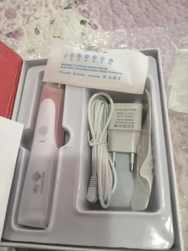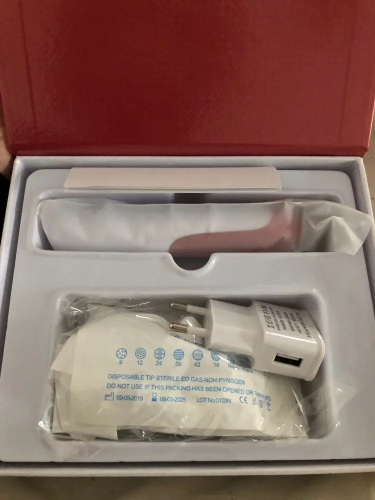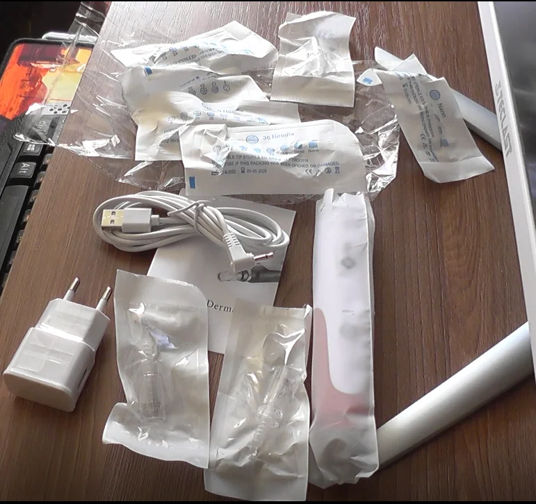 Супер прибор! Приятно, что картриджи в комплекте. Удобная зарядка, упаковано сверхаккуратно, в красивой коробке на магните и сверху обёрнуто пузырчатой плёнкой. Мезороллеры летят в мусор. Совсем не больно.