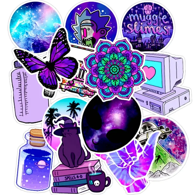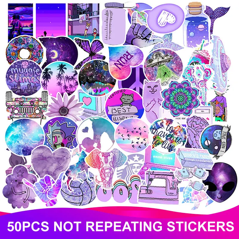 103050 шт.упак., водонепроницаемые Мультяшные фиолетовые крутые наклейки, чемодан для скейтборда, гитары, мотоцикла, граффити, наклейки для девочек, детские игрушки