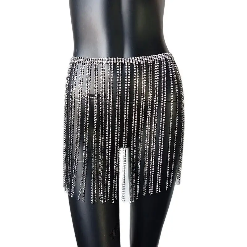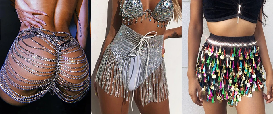 Женская пляжная мини-юбка, блестящая Регулируемая мини-юбка золотого и серебряного цвета, со стразами, Лето Длинная кисточка из горного хрусталя