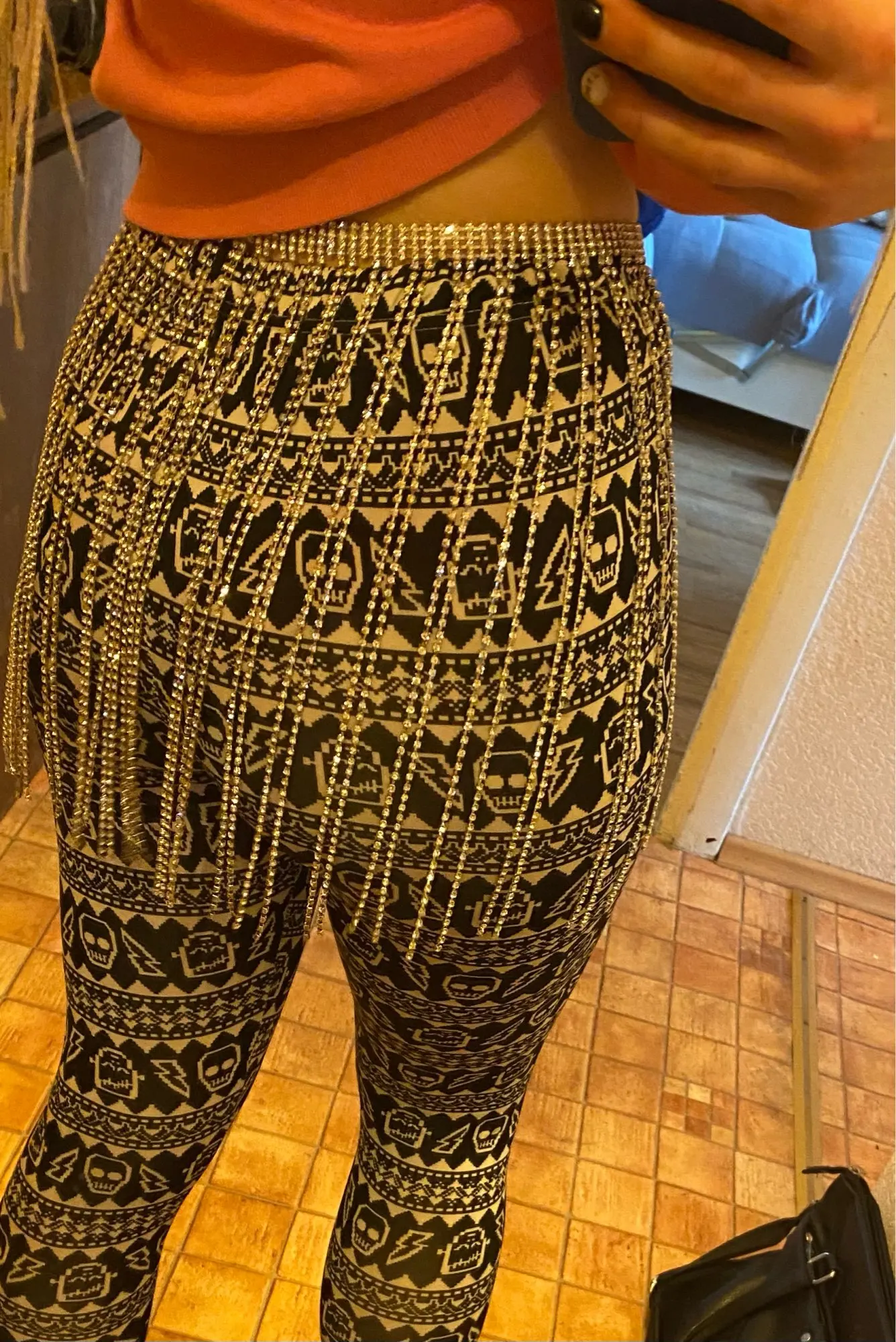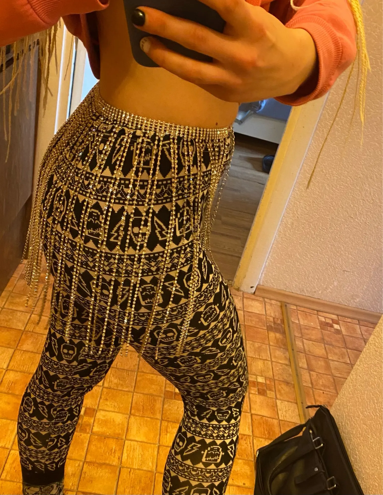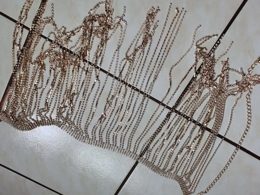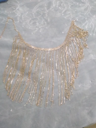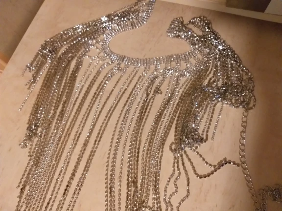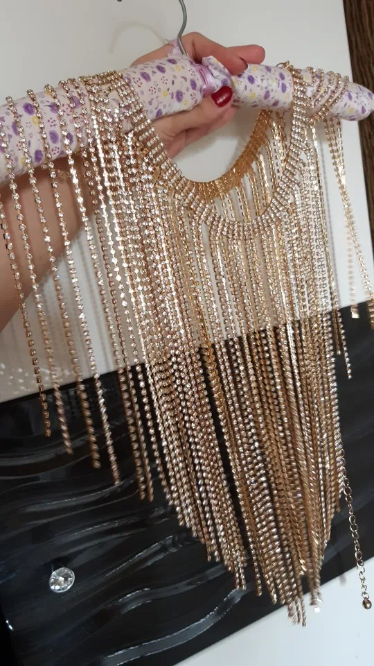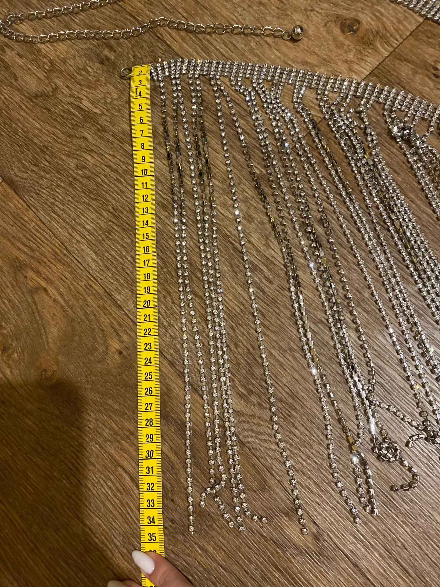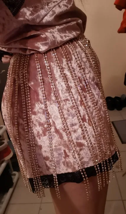 Очень красивая юбка-пояс! Соответствует фото. Все стразы на месте. Высота свисающих страз 35см; длина пояса из страз 59см; длина дополнительной цепочки сзади 50см. С продавцом не общалась. Трек отслеживался. В Украину дошло за 3 недели.