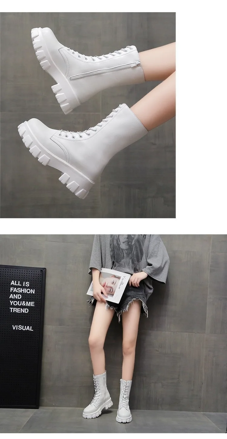Ботинки женские до середины икры, на шнуровке, на молнии, спортивны...