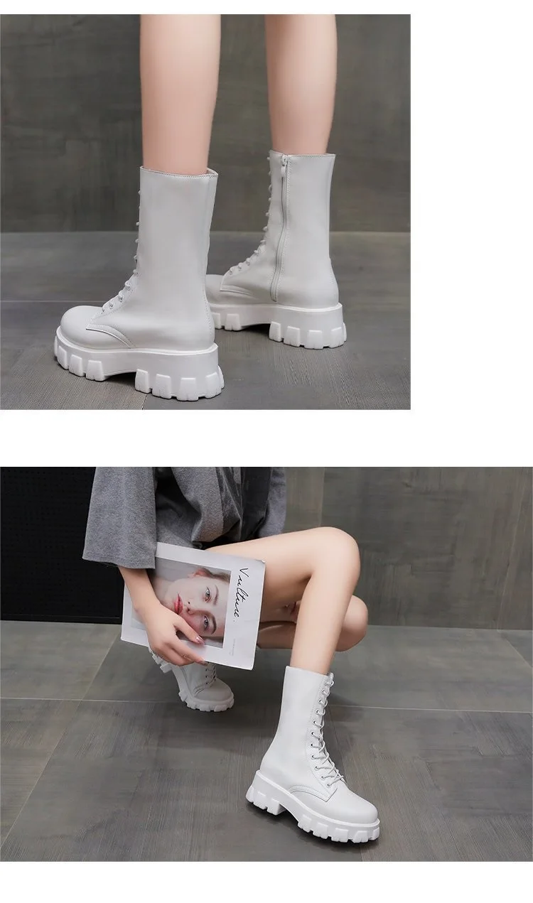 Женские демисезонные белые ботинки 2021, модные черные кожаные боти...
