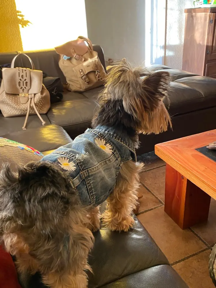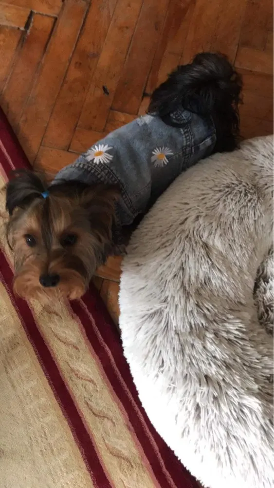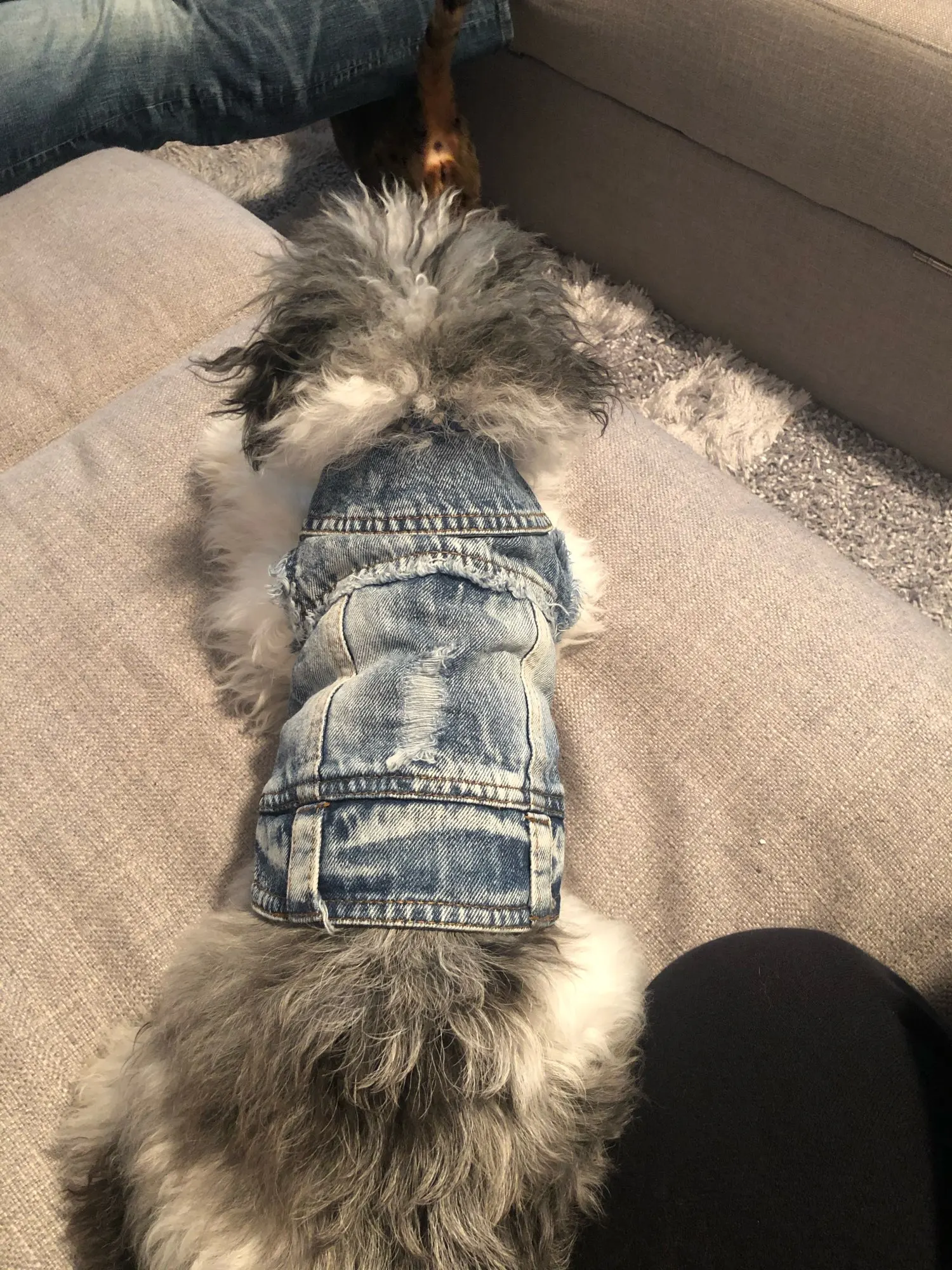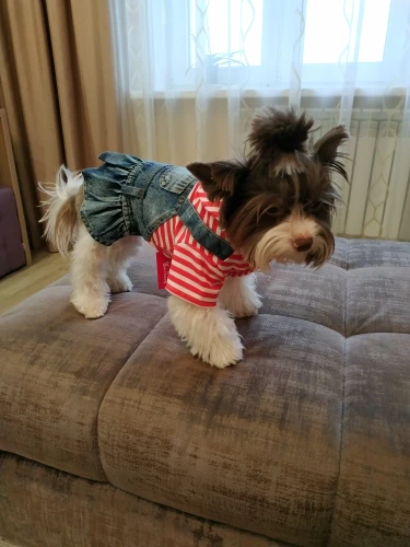 Размер S подходит моему 2 кг Чихуахуа довольно хорошо, некоторые комнаты остались, так что это не туго. Джинсовая ткань не жесткая, что отлично! В целом очень доволен :)