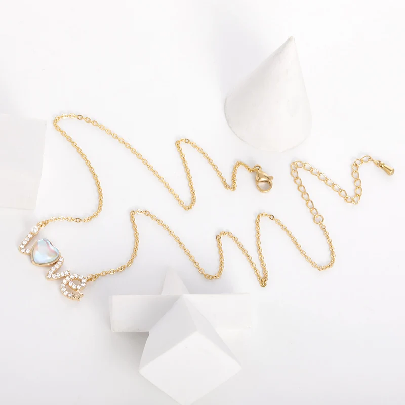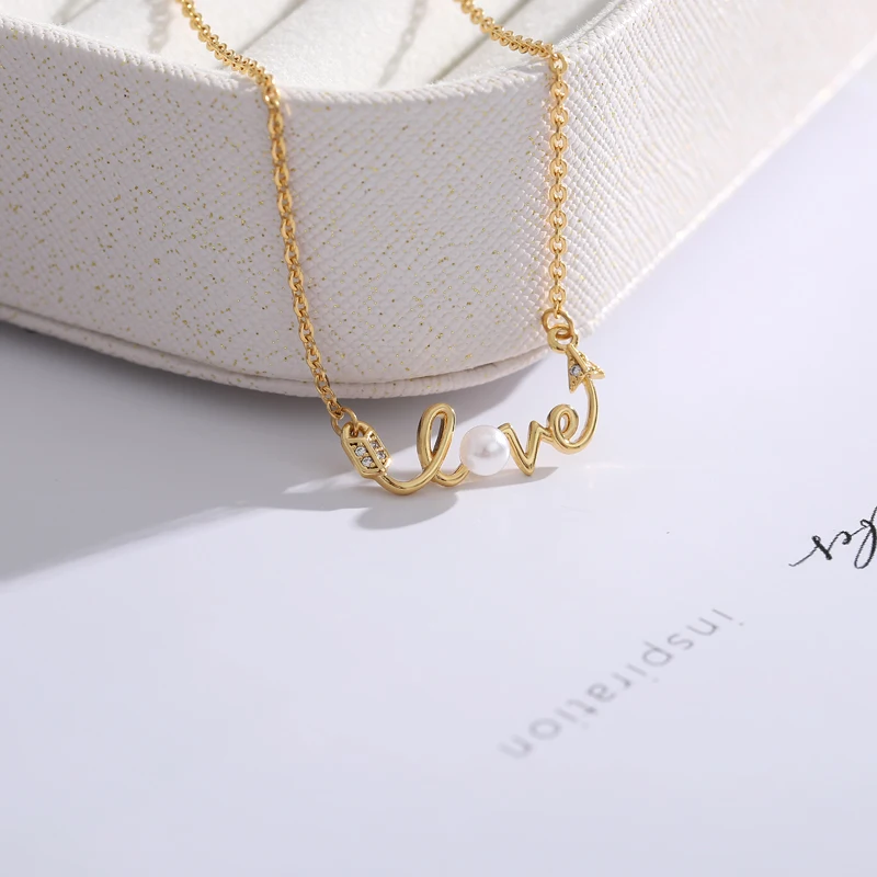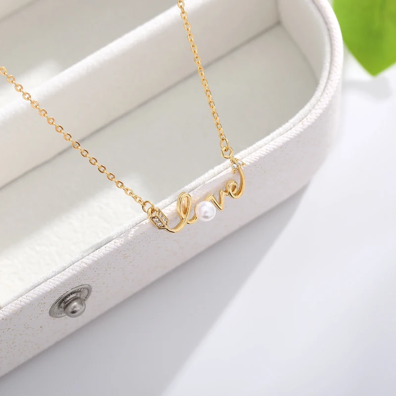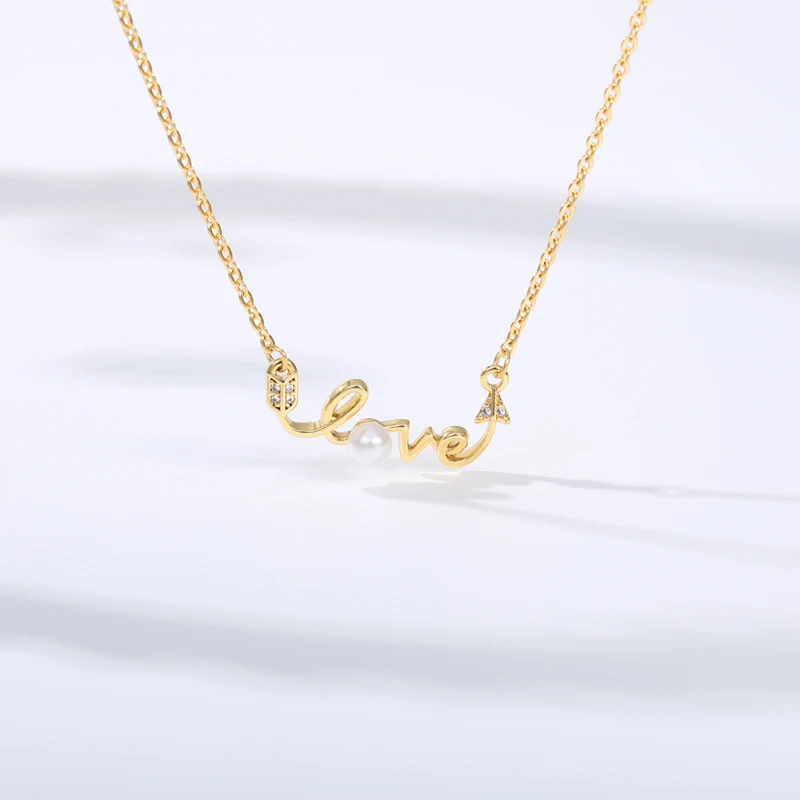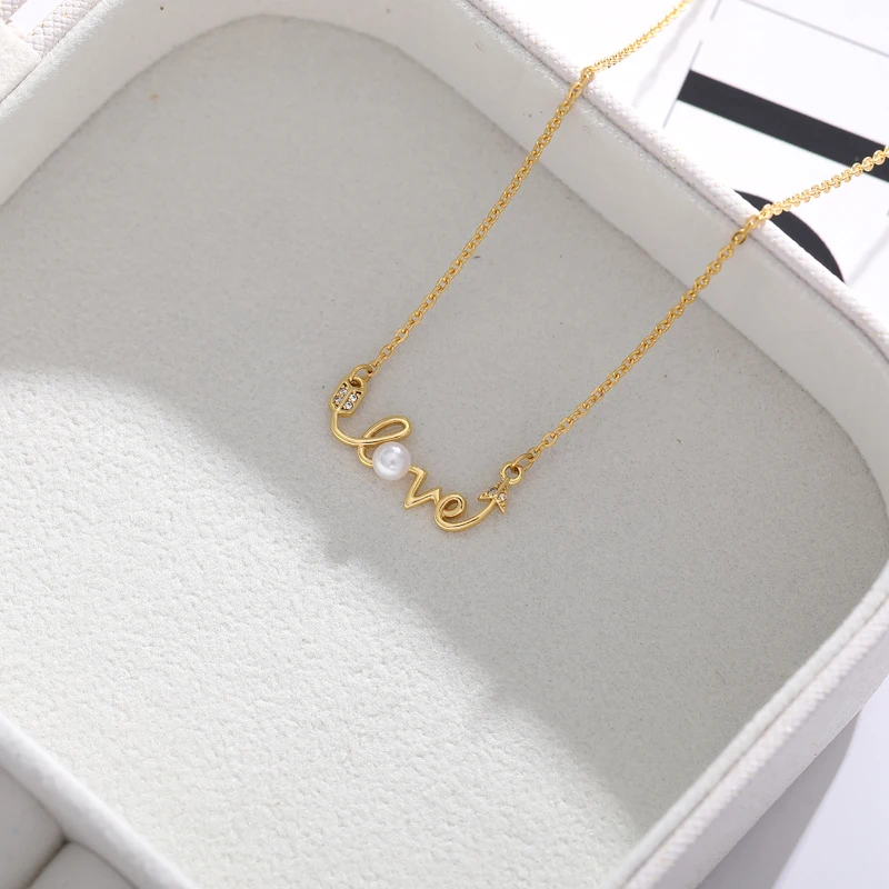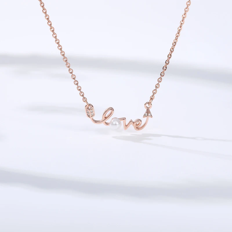 Ожерелье из нержавеющей стали под розовое золото с жемчугом