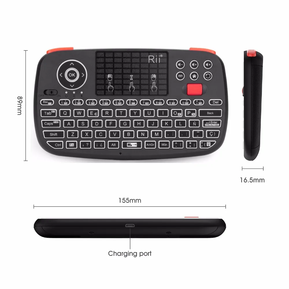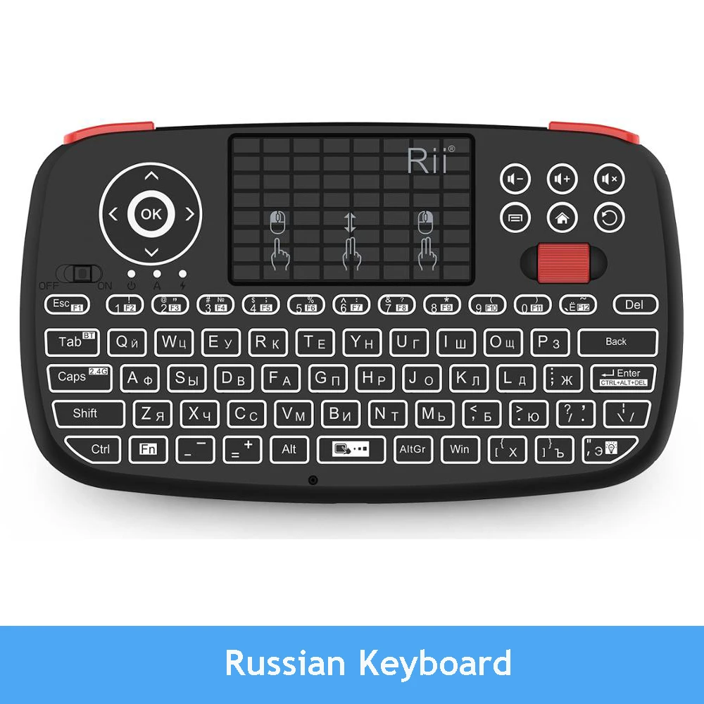Беспроводная клавиатура Rii i4 с подсветкой, мини-клавиатура с Bluetooth, 2,4 ГГц, русскаяанглийскаяиспанская раскладка, для WindowsAndroid