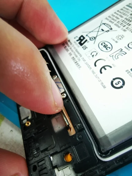 Отсутствует массовый контакт на шасси, микропластик тоже. Направляющие наконечника ЖК-дисплея не спереди, а режим отпечатка пальца не работает.