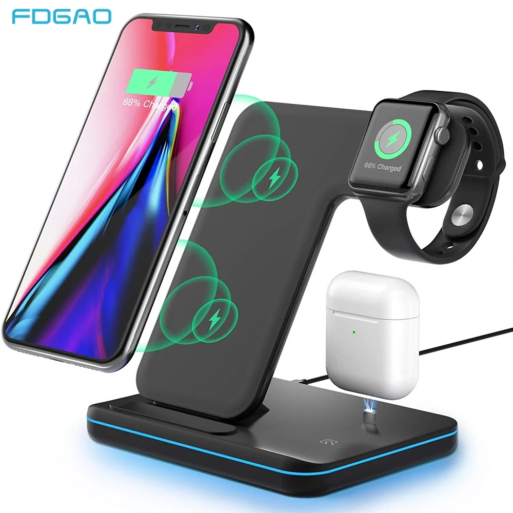 Беспроводное зарядное устройство Qi 3 в 1, 15 Вт, подставка для iPh...