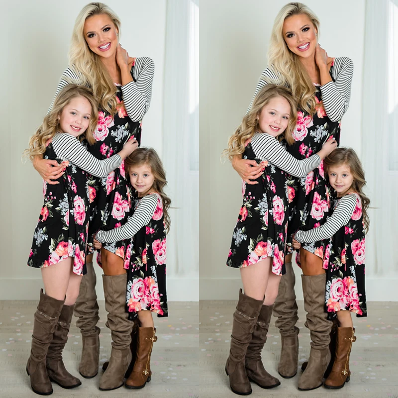 Одинаковая одежда для мамы и дочки, летнее платье с цветочным рисун...