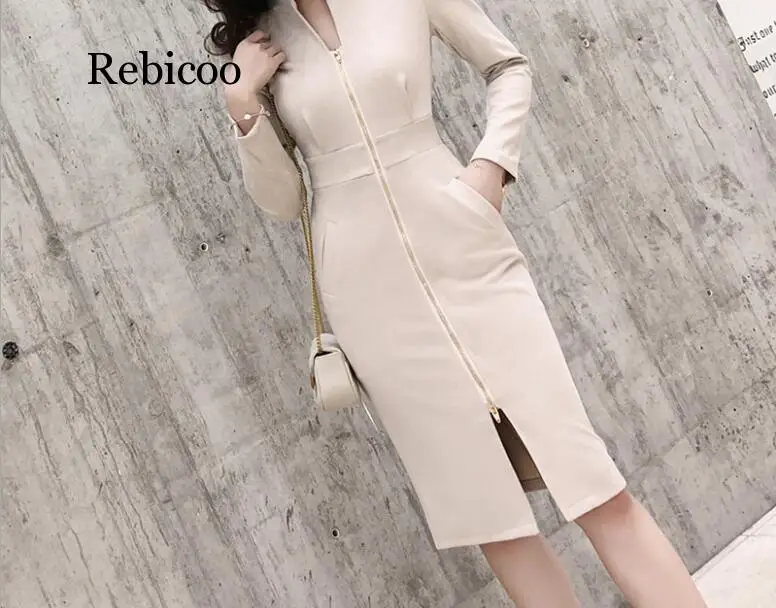 Женское Замшевое платье с длинным рукавом, облегающее винтажное офисное платье с воротником-стойкой