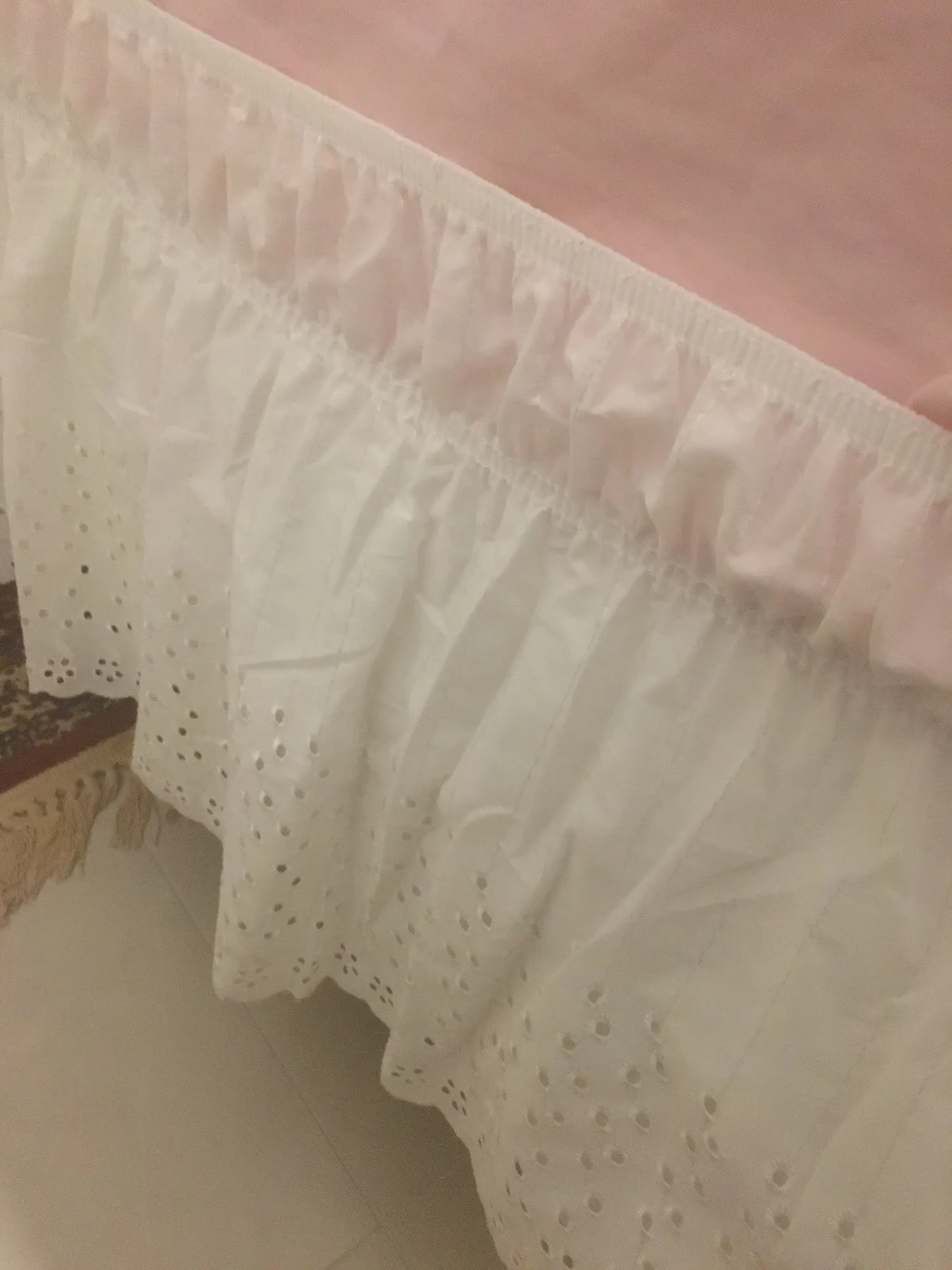 Одна сторона не имеет лент и только эластичный, который не может быть отрегулирован. Идеально и прекрасно подходит для моей двухспальной кровати. Красивый и белый, отличное качество кружева. Спасибо!