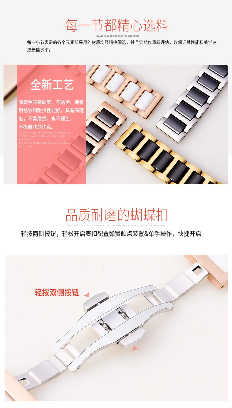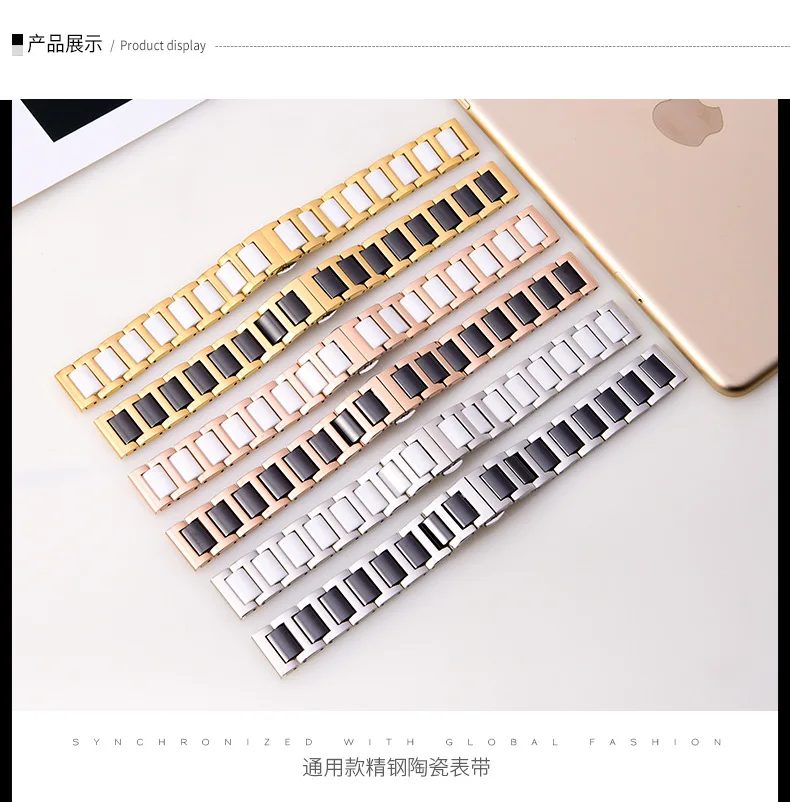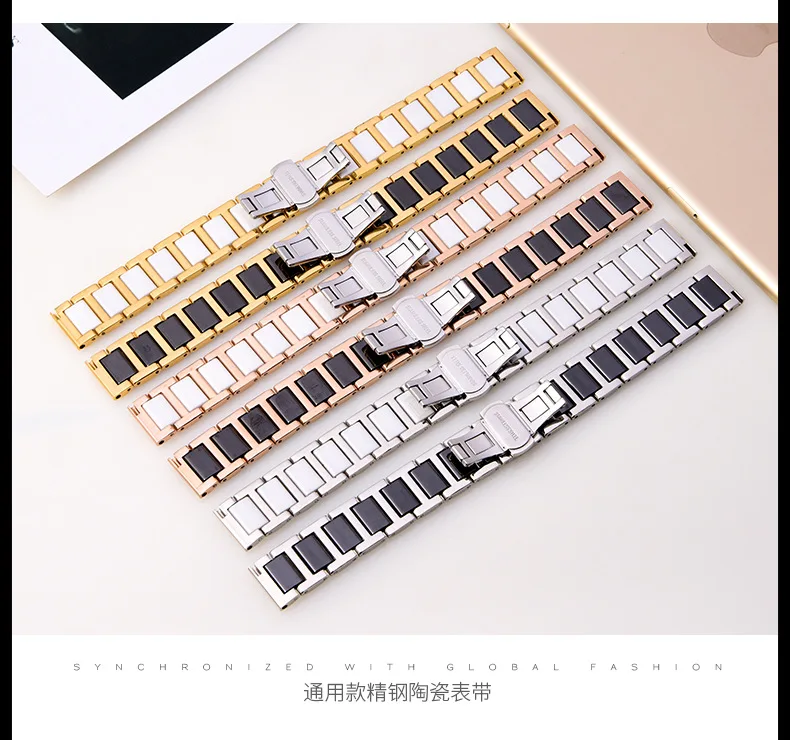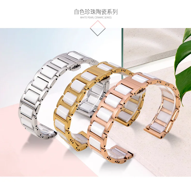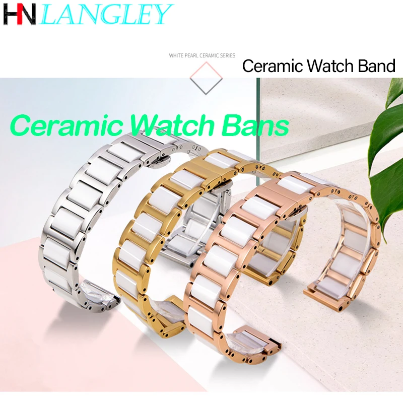 Ремешок для часов керамический, роскошный быстросъемный металлический браслет с язычком для мужчин и женщин, 14 мм 16 мм 18 мм 20 мм 22 мм, черный белый