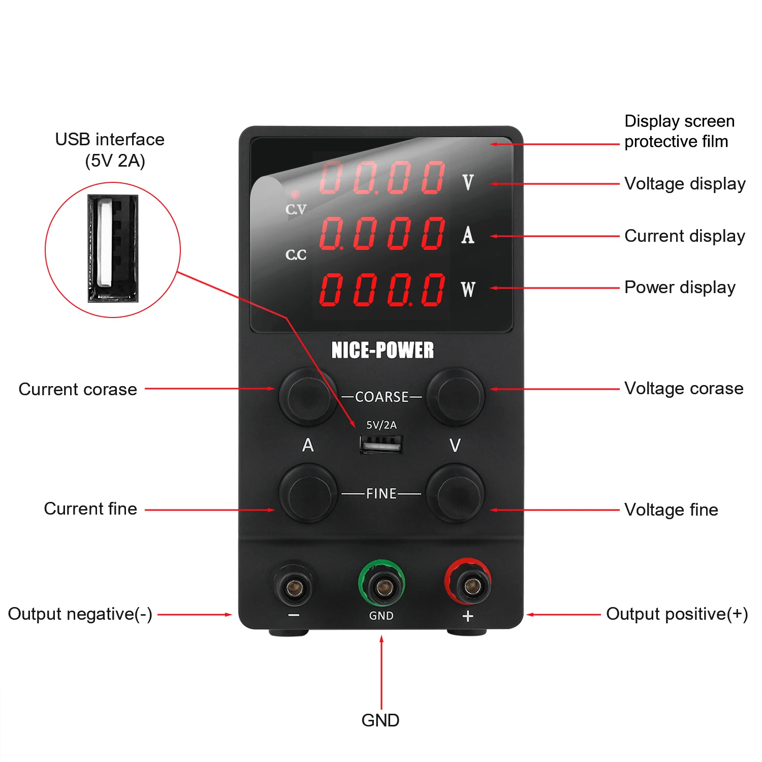 Выходное напряжение и ток продукта можно контролировать и регулировать путем грубой регулировки и тонкой регулировки потенциометра соответственно, поэтому он обеспечивает более удобство и точность в регулировке напряжения и тока.