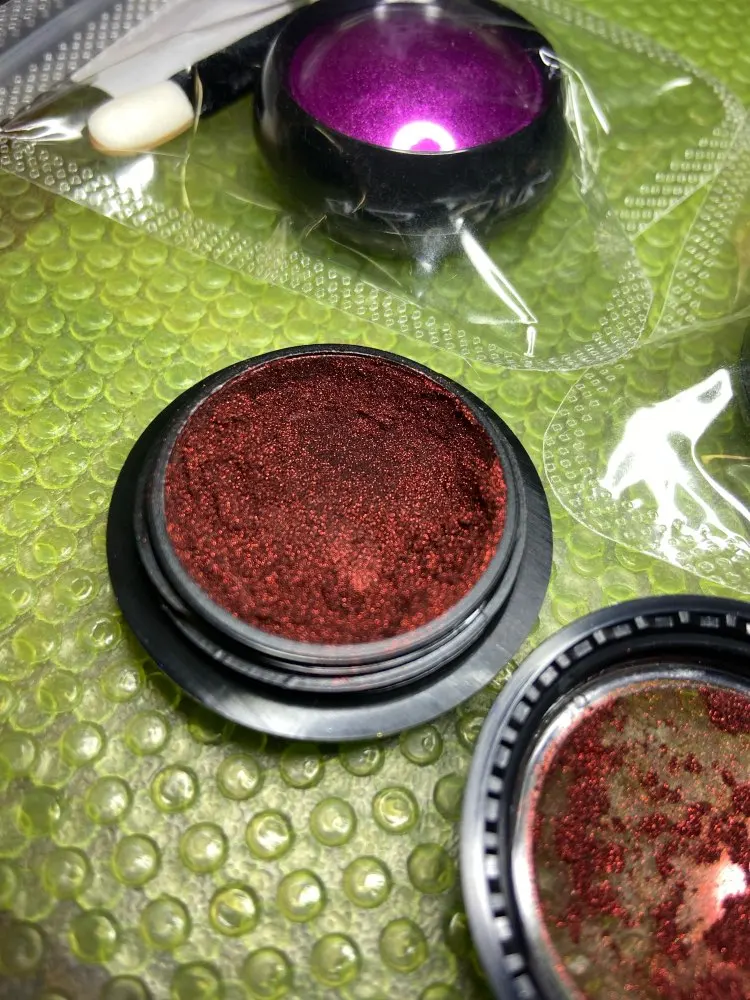 Заказывала 12 цветов, всё пришло в одном пакете в целости, цвета совпадают, каждая втирочка в индивидуальном пакетике со спонжем. Наполнены как и заявлено, где-то чуть меньше, где-то чуть больше. Серебро заказывала оба и разницы между ними нет. Синему и зелёному цветам так же как и у многих не хватает зеркальности. На горячий просушенный 30сек топ втирается отлично, зеркальность неплохая, но повторюсь не у всех. Очень понравились и советую, правда есть одно но_это долгая доставка(до Краснодара бальше двух месяцев)