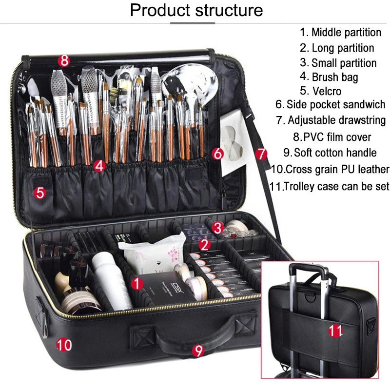Косметичка Clapboard, кожаный Профессиональный органайзер для косметики, вместительная сумочка для Хранения Туалетных принадлежностей, дорожный чемоданчик