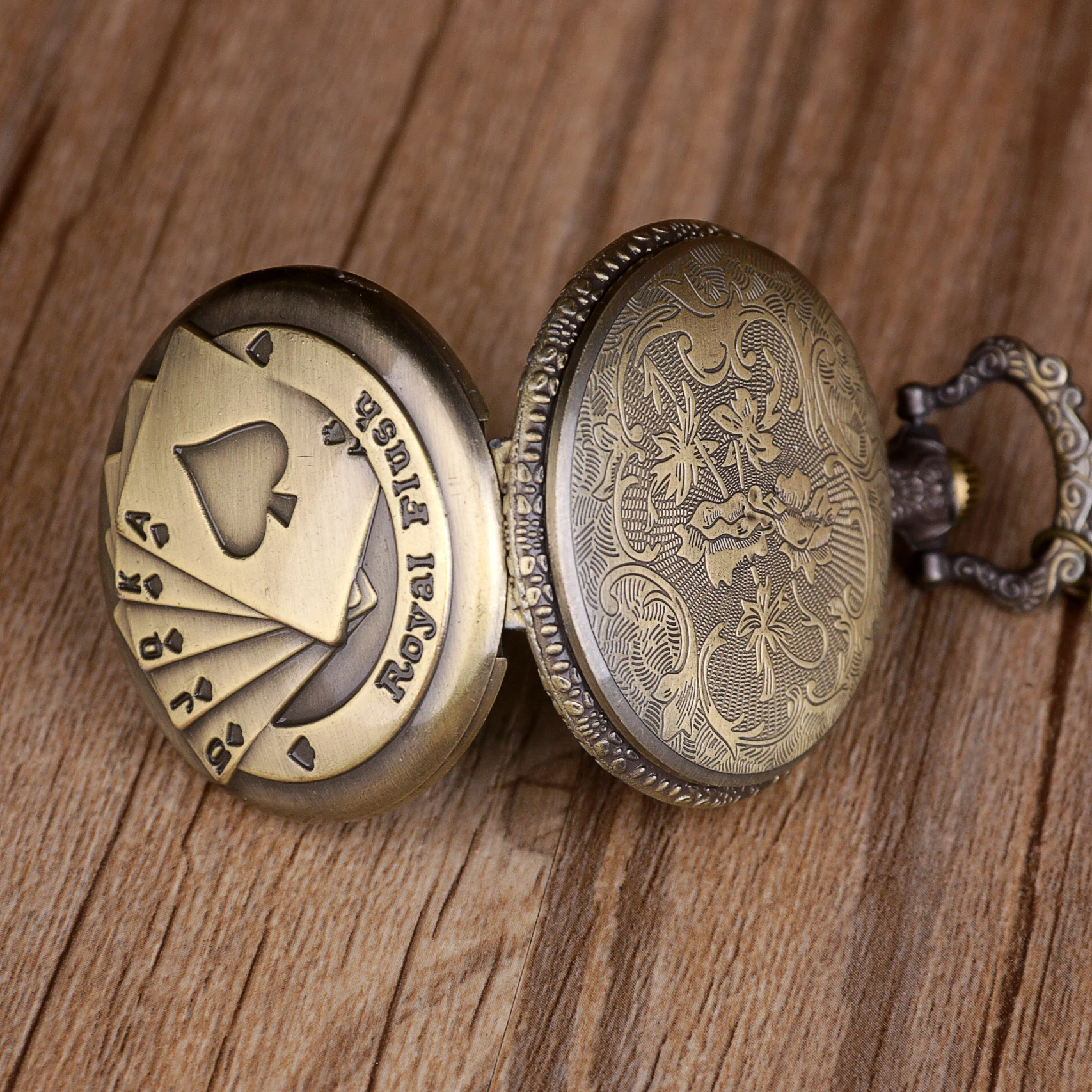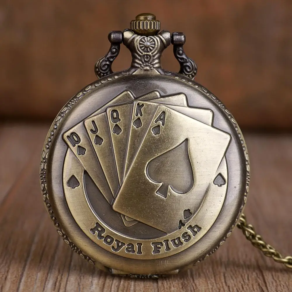 Стимпанк Античная бронза Royal Flush кварцевый кулон брелок карманные часы с цепочкой ожерелье подарок брелок часы для мужчин женщин