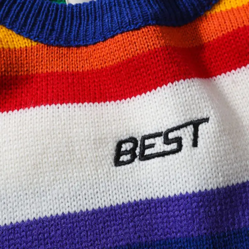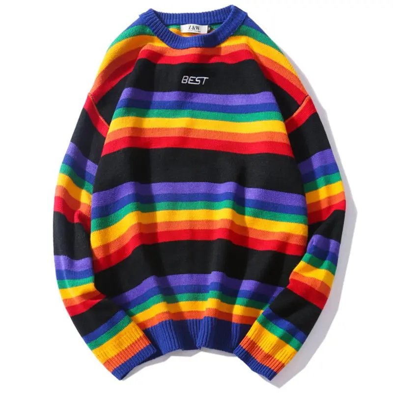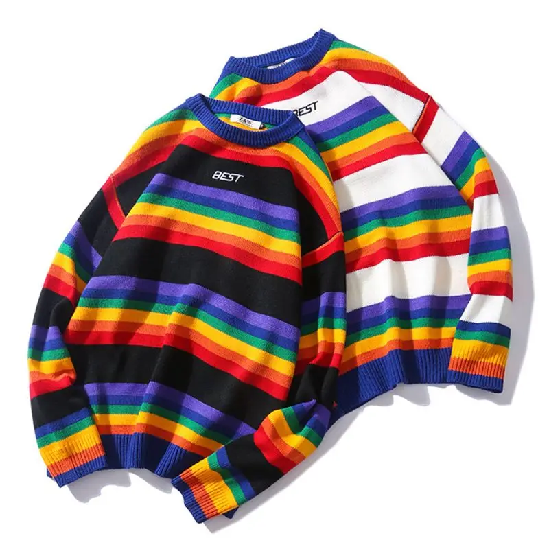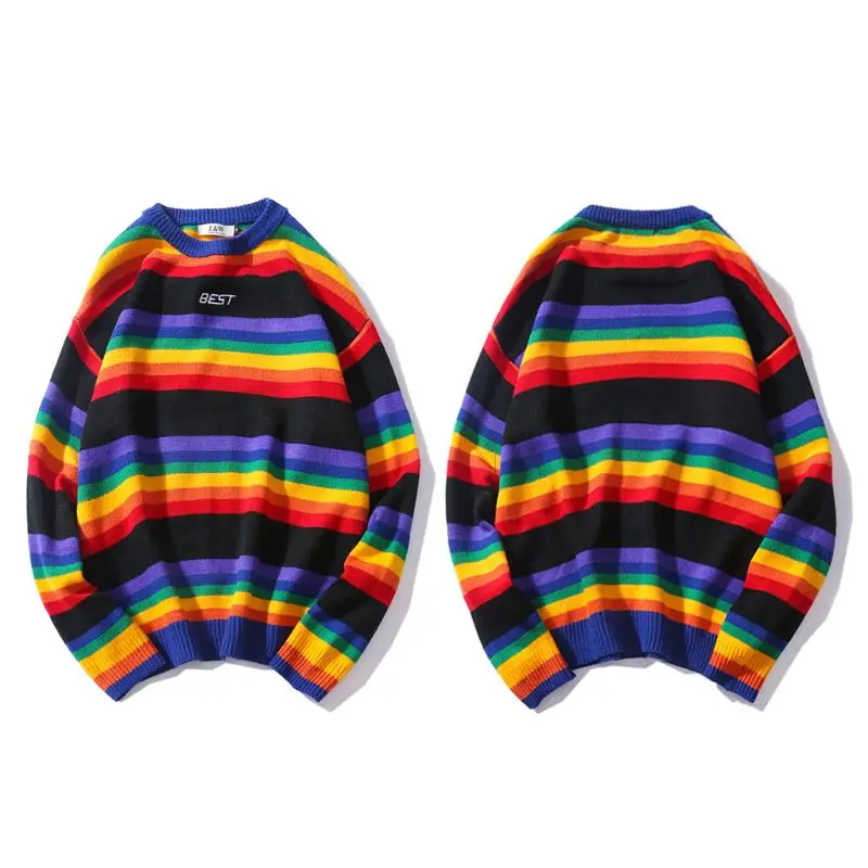 Мужской, женский, Мужской Свитер оверсайз в радужную полоску, пуловер с круглым вырезом, трикотажные топы