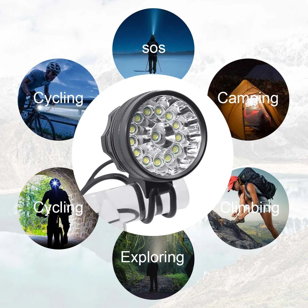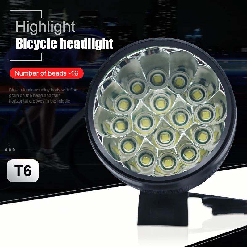 Велосипедная фара 16 * XML-T6, алюминиевая, мощная, перезаряжаемая, 3 режима, 400 люмен
