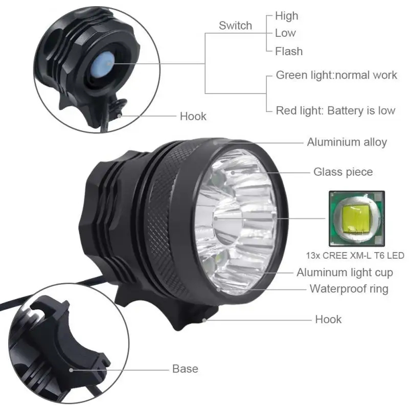 1 * велосипедный передний светильник(Без аккумулятора и зарядного устройства)2 * резиновое кольцо