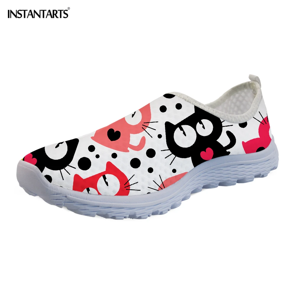 Женские сетчатые кроссовки INSTANTARTS, повседневная обувь на плоской подошве, с 3D принтом кота, пляжные сникерсы без шнуровки, для воды, на весну-лето