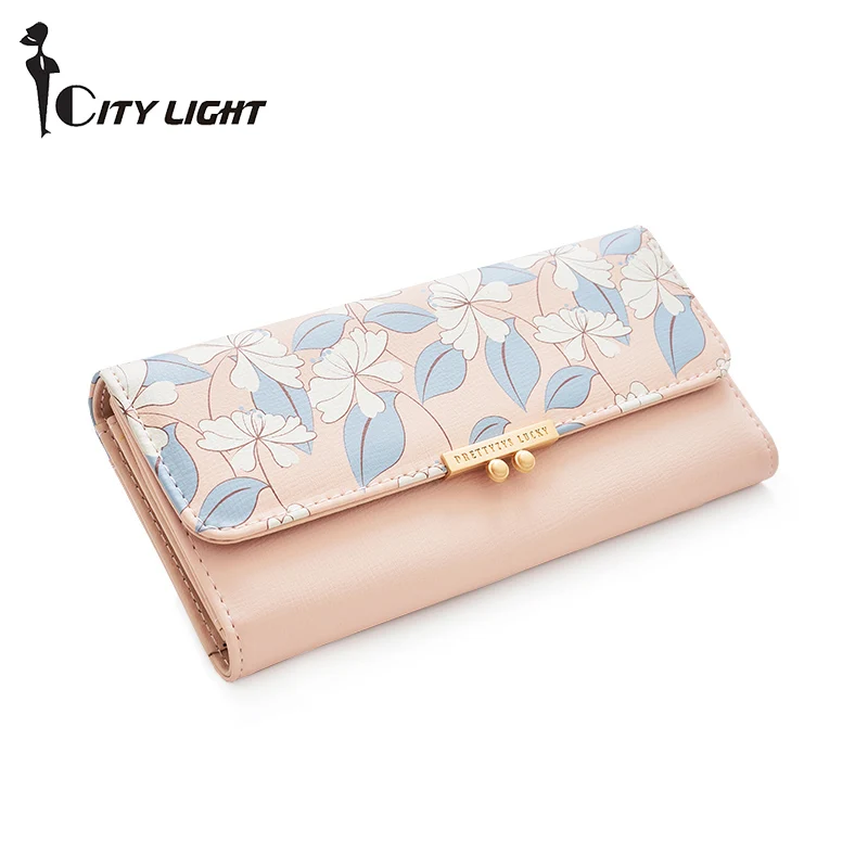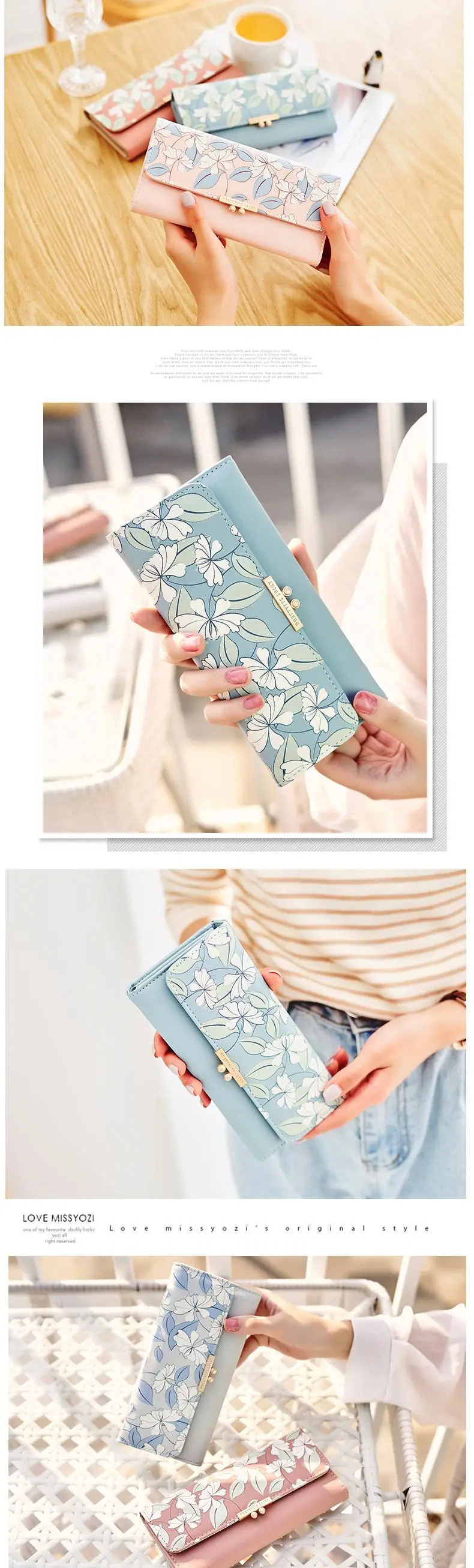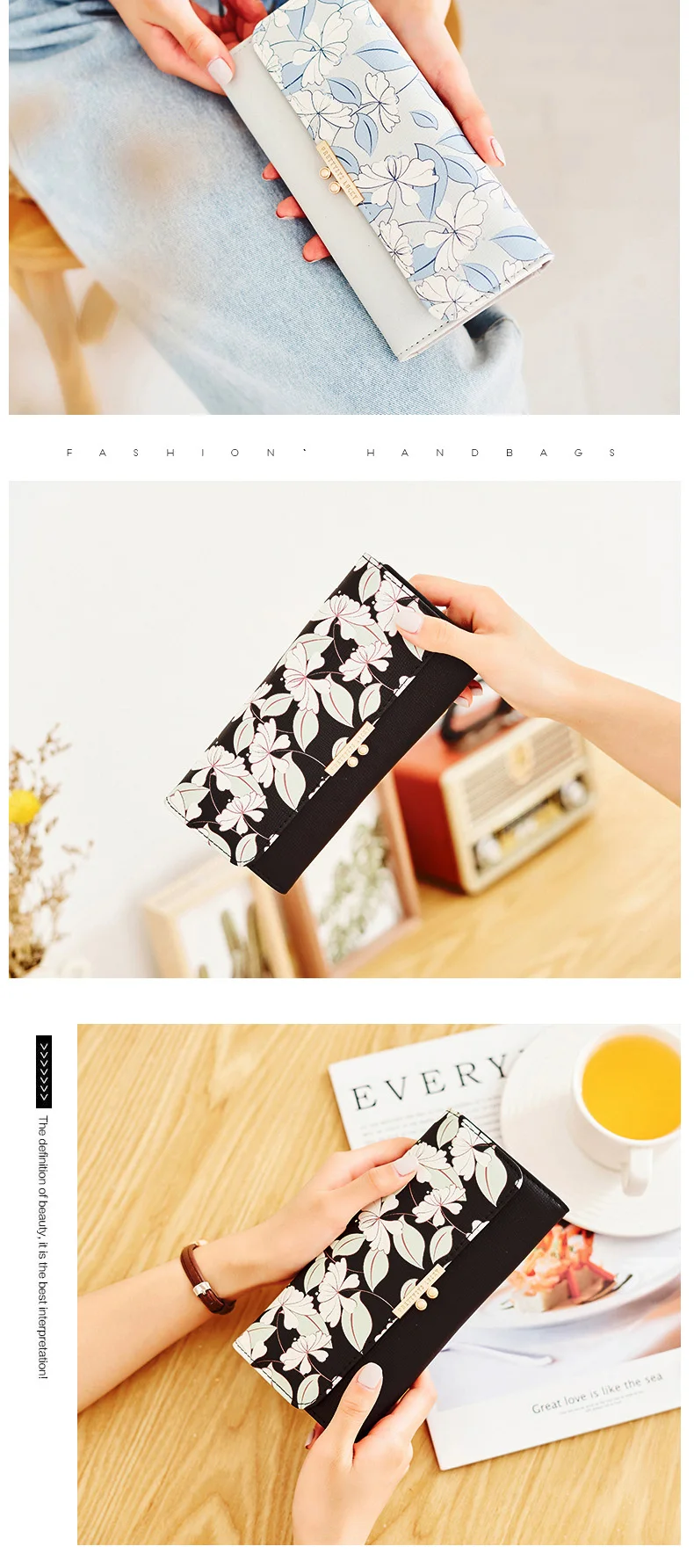 Брендовый женский милый модный кошелек, удлиненный бумажник с цветочным принтом, кошелек для телефона, женский клатч в три сложения, вместительные кошельки