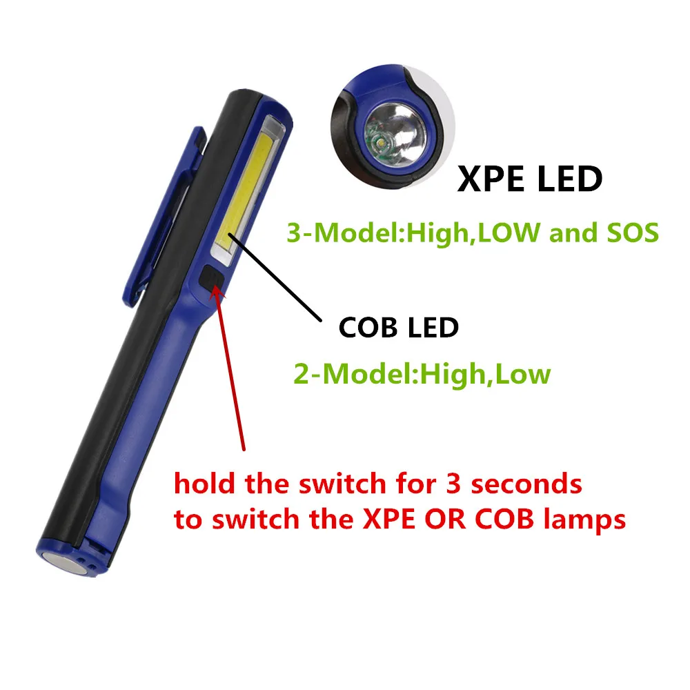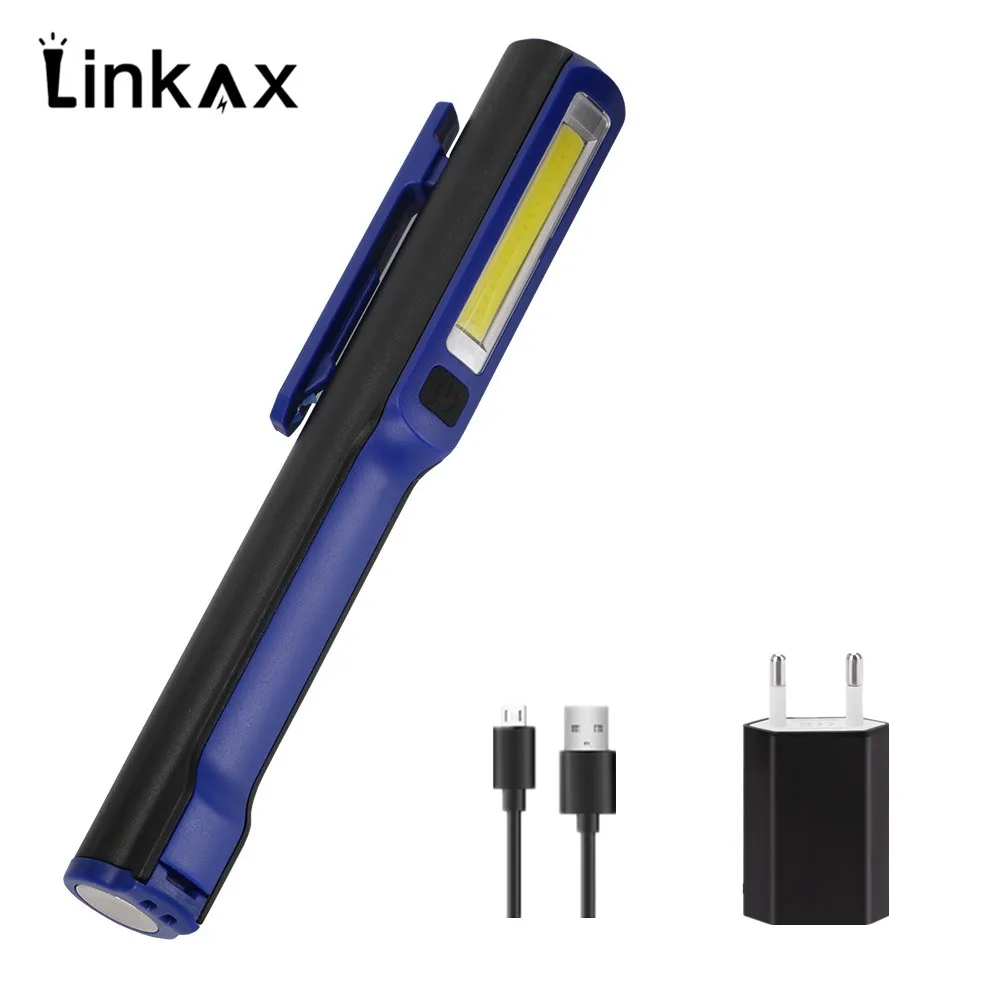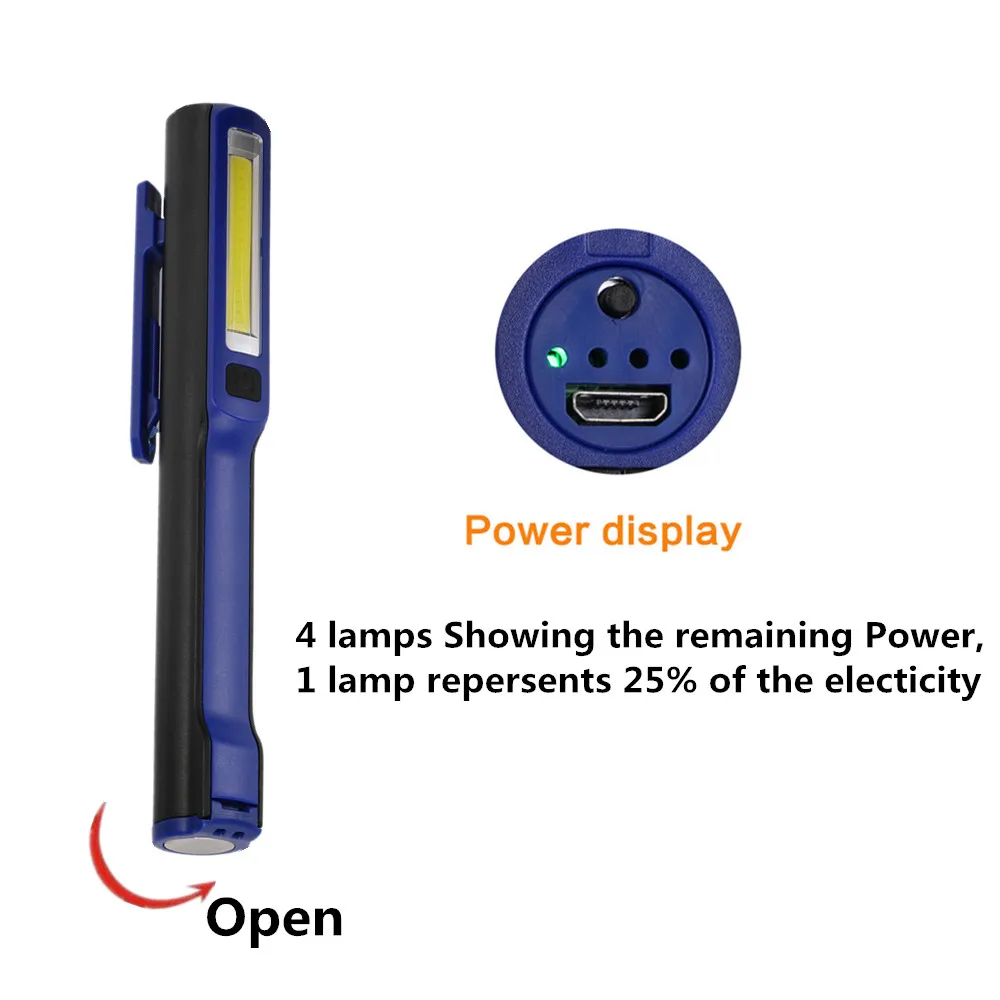 Светодиодный фонарик с USB-зарядкой, перезаряжаемый магнисветодиодный ручной фонарь с COB матрицей и зажимом, светильник со встроенным литиевым аккумулятором 18650, 3 Вт