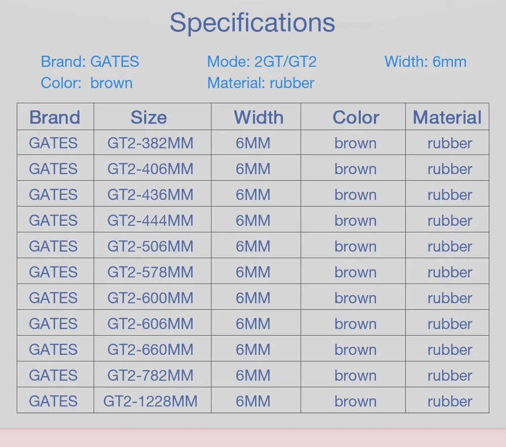 Синхронный ремень 3D GATES 2GT, детали для принтера GT2 6 мм 382 406 600 782 1228 мм, износостойкий ремень синхронизации Ender3 CR10
