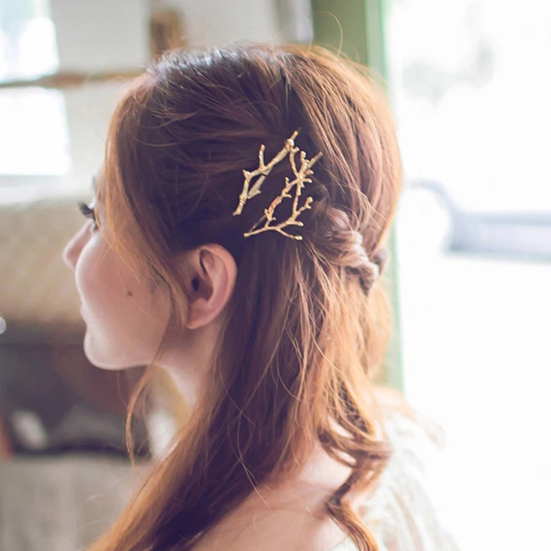 Модные заколки для волос для девочек, женские металлические заколки для волос с листьями ветвей, аксессуары для укладки волос в платье