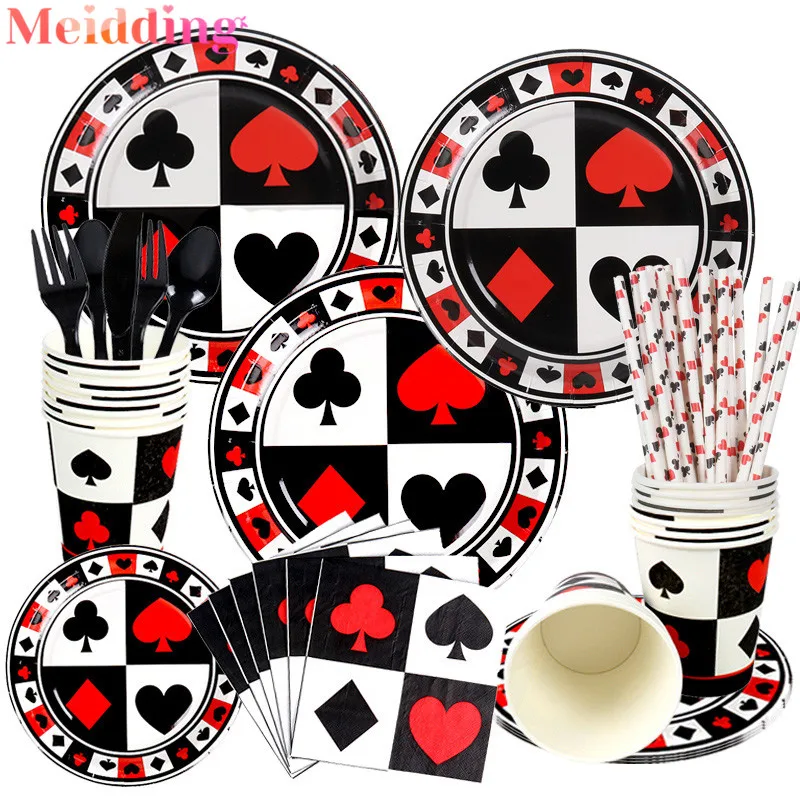 Украшение для вечевечерние в стиле казино, волшебника, бумажные соломинки с узором для покерных карт, тематические вечеринки в Лас-Вегасе, для взрослых, для дня рождения, вечевечерние